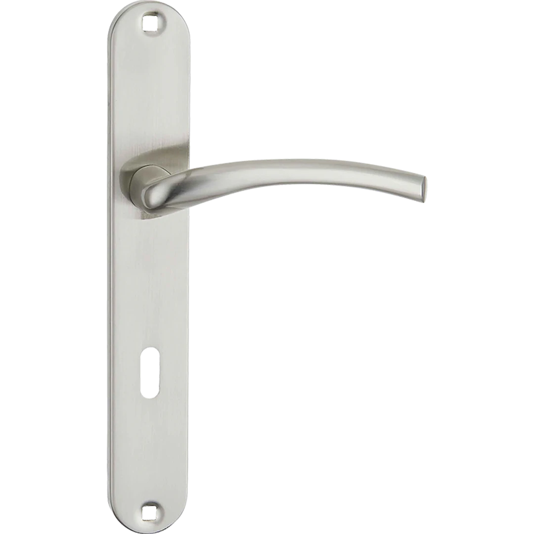 AGRA klamka na szyldzie długim na klucz sprawdzi się w nowoczesnych i klasycznych aranżacjach, gdzie ważna jest trwałość, komfort chwytu oraz spójność z wyglądem skrzydła drzwiowego i okuć.