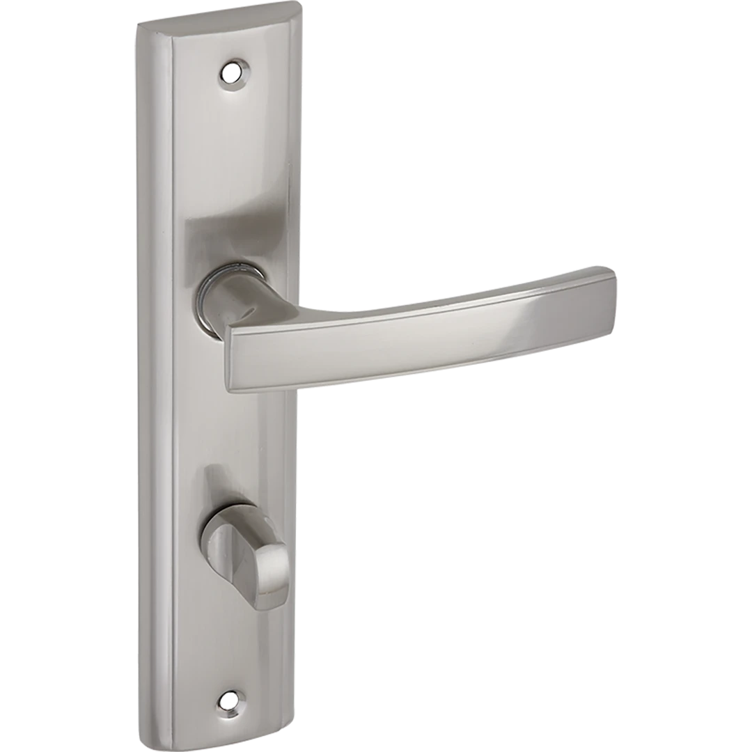 AURA klamka na szyldzie długim WC sprawdzi się w nowoczesnych i klasycznych aranżacjach, gdzie ważna jest trwałość, komfort chwytu oraz spójność z wyglądem skrzydła drzwiowego i okuć.
