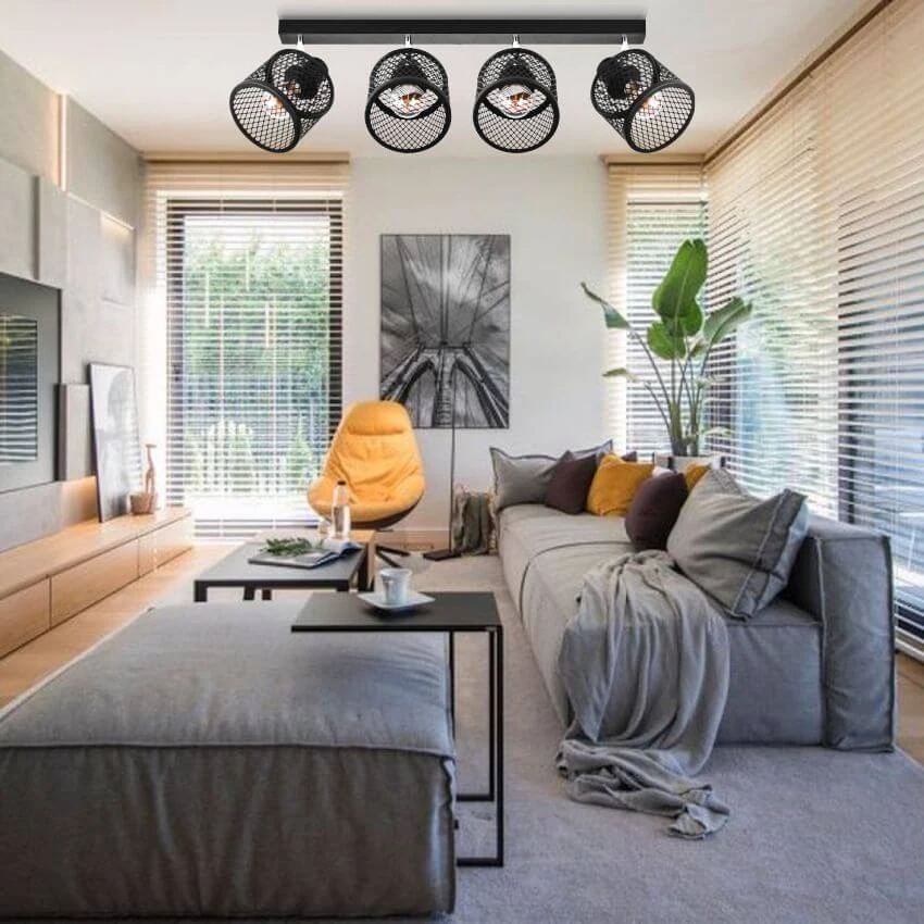BASKET 4 Lampa sufitowo - ścienna - Industrialna, metalowa, 4xE27 – nowoczesna lampa do salonu i jadalni pozwala wygodnie doświetlić wybrane strefy wnętrza i jednocześnie pełni funkcję dekoracyjną. To rozwiązanie do przestrzeni, w których ważny jest klimat i funkcjonalność.