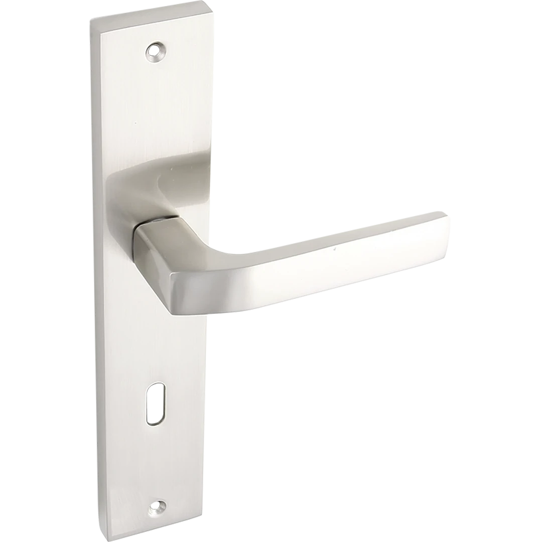 BINGO klamka na szyldzie długim na klucz sprawdzi się w nowoczesnych i klasycznych aranżacjach, gdzie ważna jest trwałość, komfort chwytu oraz spójność z wyglądem skrzydła drzwiowego i okuć.