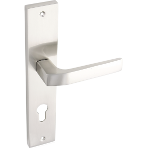 BINGO klamka na szyldzie długim na wkładkę sprawdzi się w nowoczesnych i klasycznych aranżacjach, gdzie ważna jest trwałość, komfort chwytu oraz spójność z wyglądem skrzydła drzwiowego i okuć.