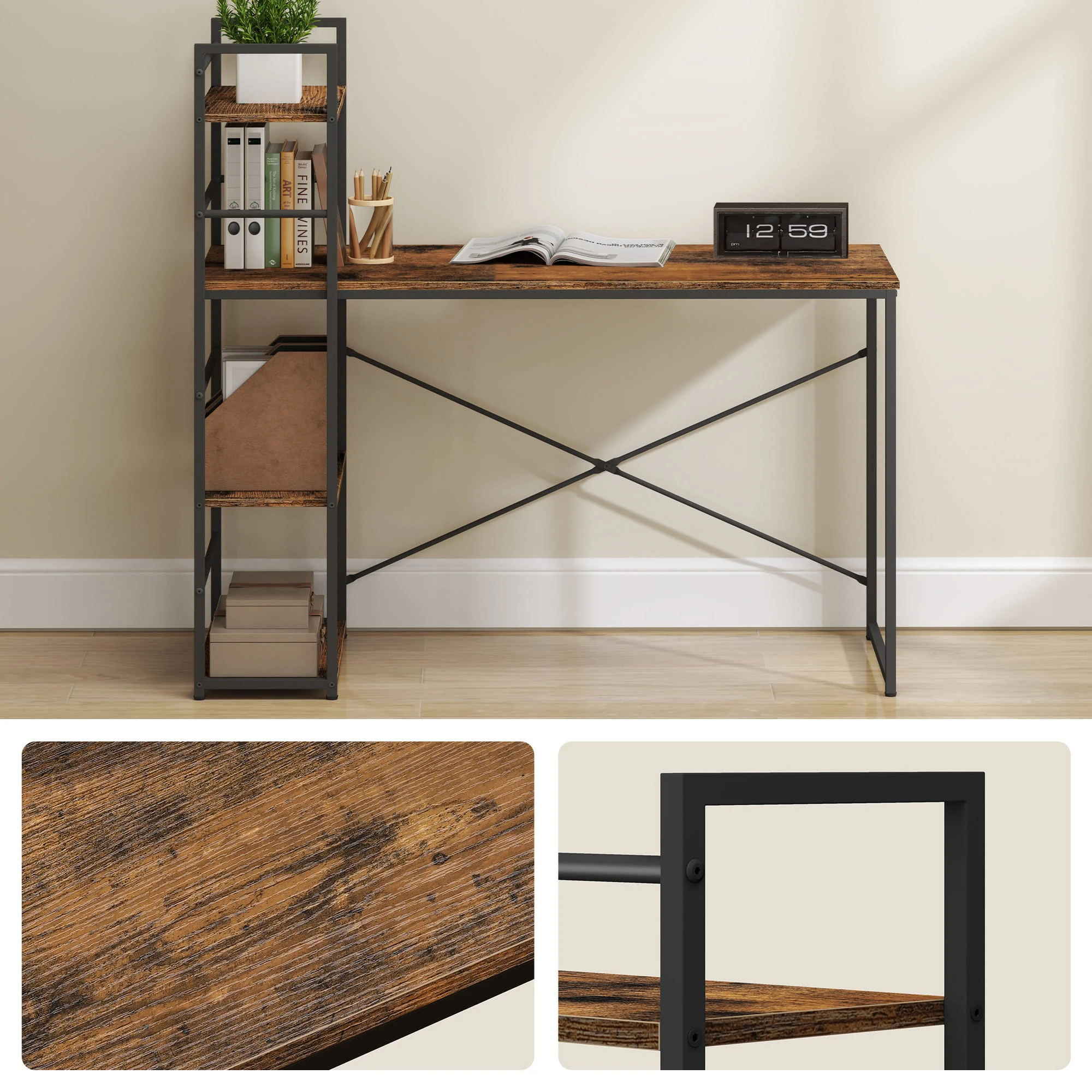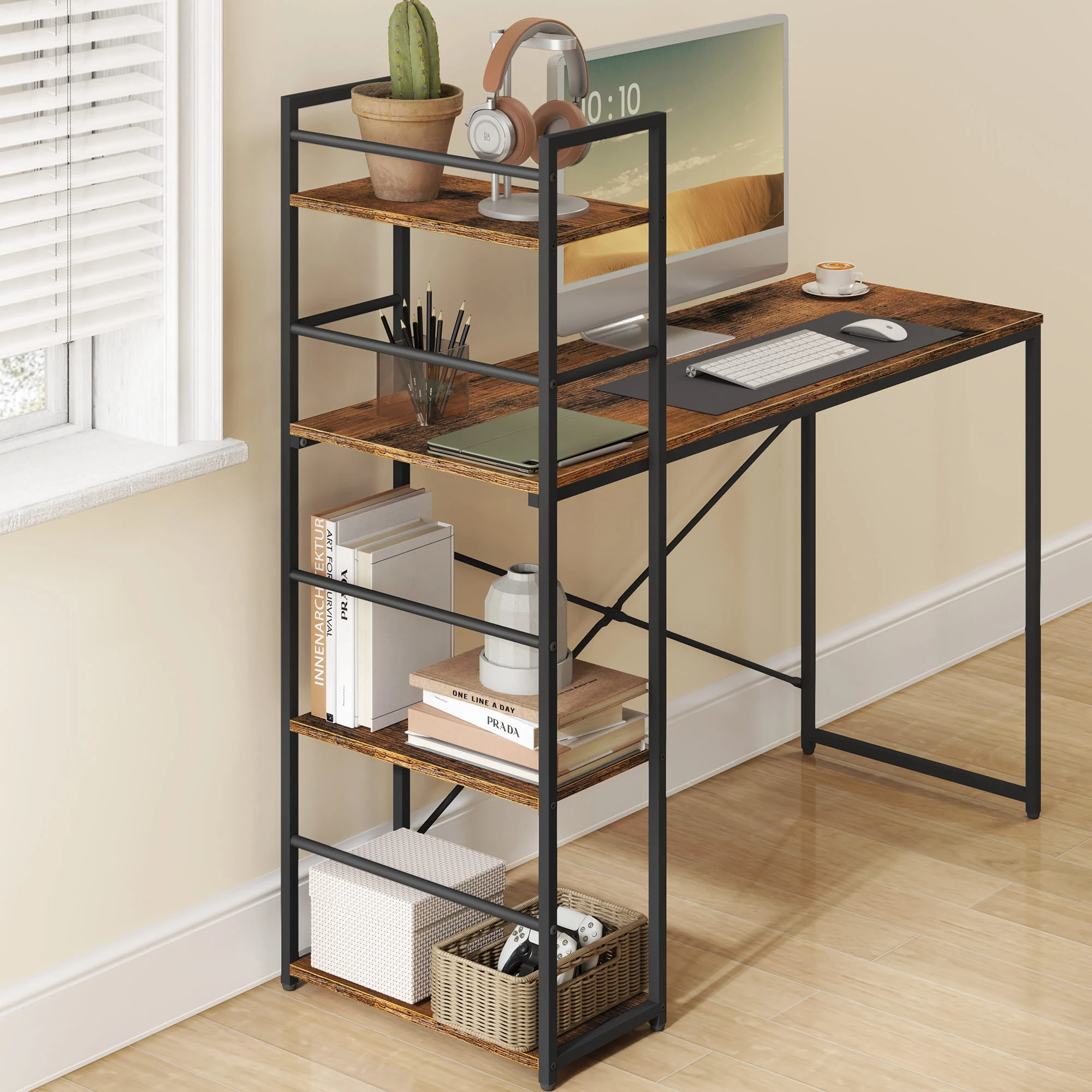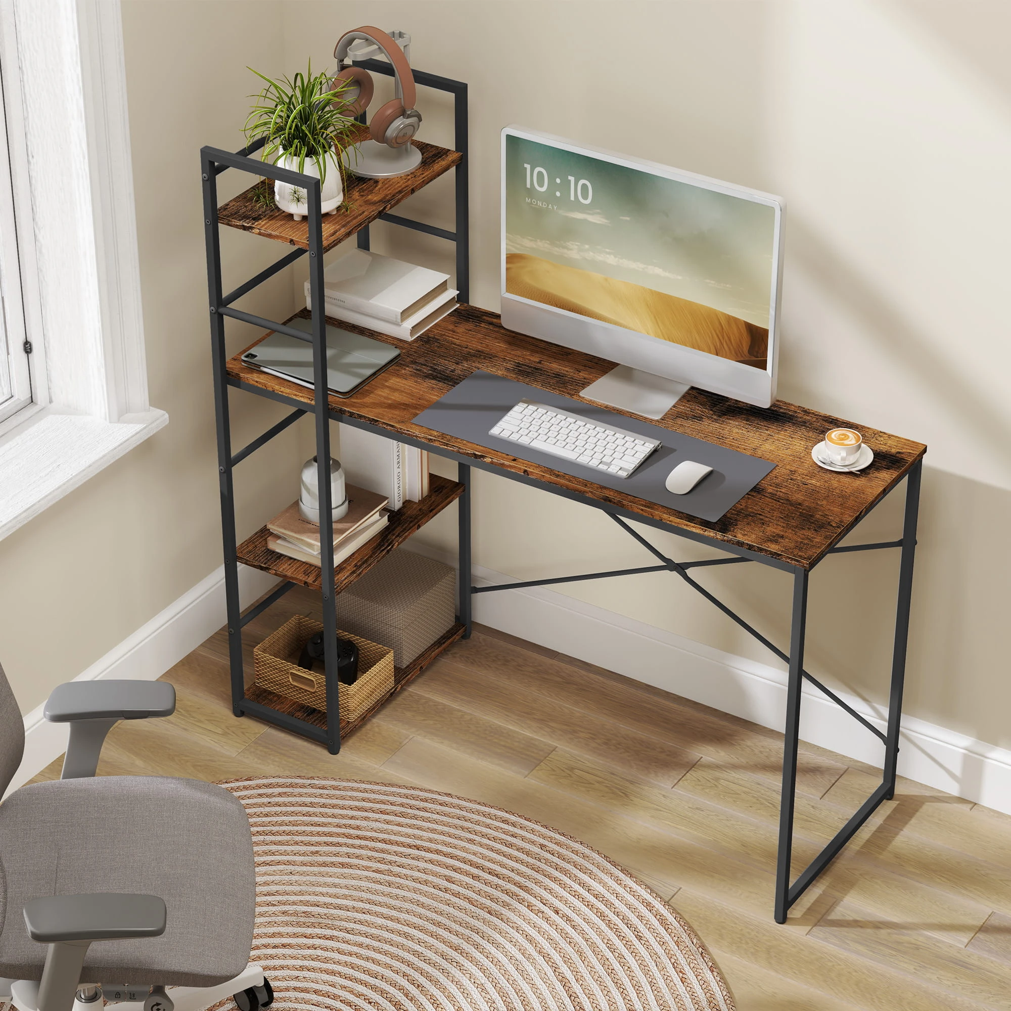 Biurko Komputerowe MAX 4.0 - rustykalne nogi czarne pomaga zorganizować komfortowe miejsce do pracy i nauki. To mebel, który łączy estetykę z funkcjonalnym wykorzystaniem przestrzeni.