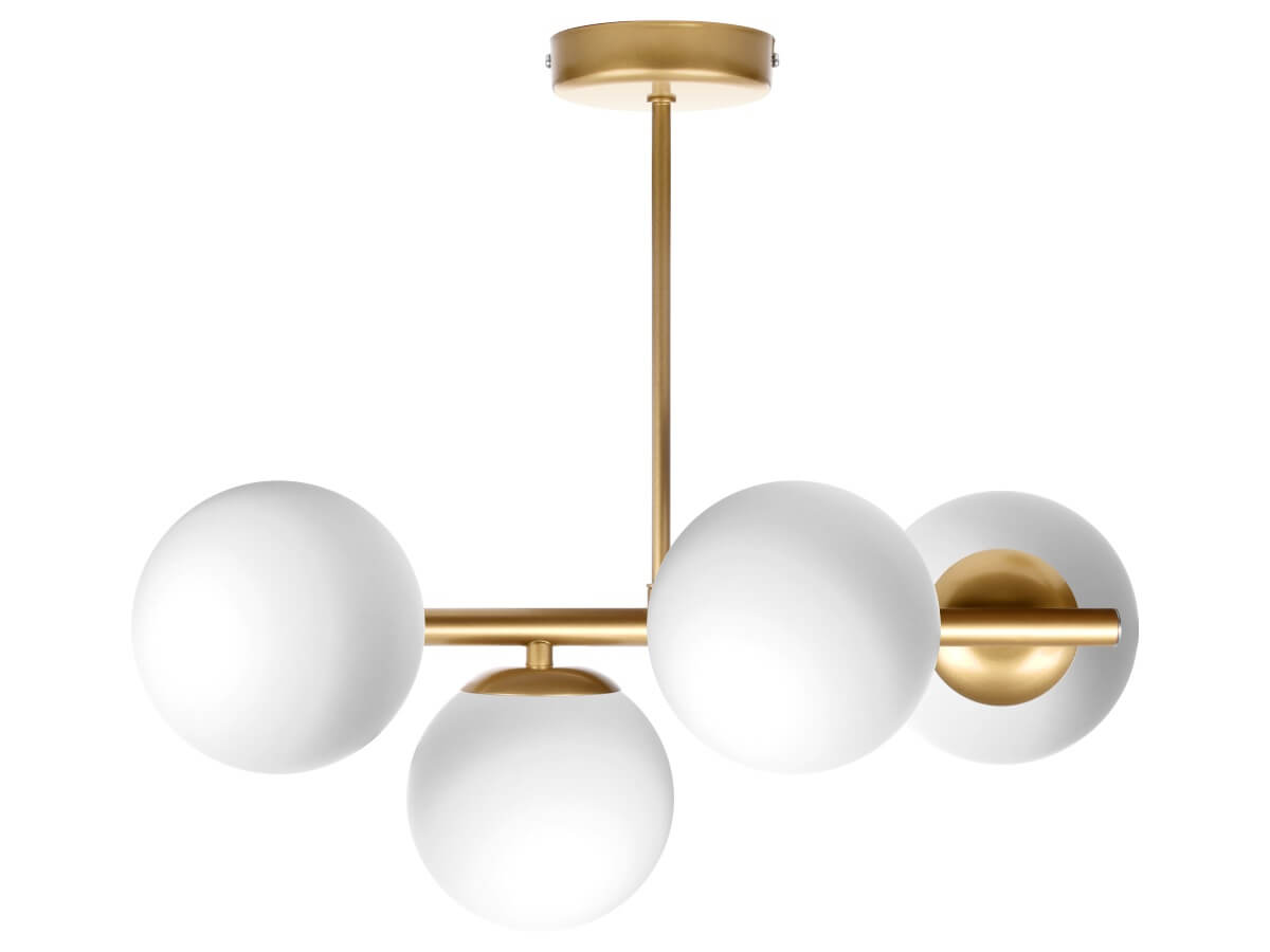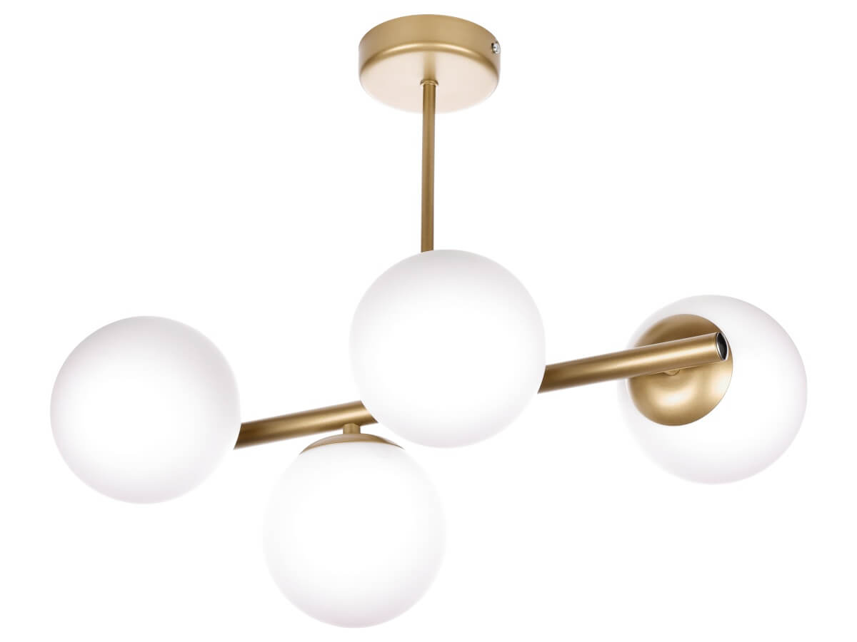 CERES 4 Lampa sufitowa - Nowoczesna, szklane kule, 4xE14 – nowoczesna lampa do salonu i jadalni sprawdzi się jako element oświetlenia głównego lub uzupełniającego, w zależności od układu pomieszczenia. To propozycja do wnętrz, w których liczy się zarówno światło, jak i design.