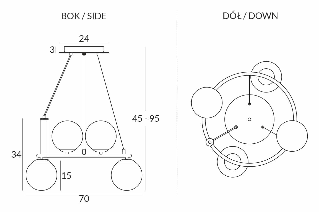 CERES 4 Lampa wisząca - Nowoczesna, szklane kule, 4xE14 – nowoczesna lampa do salonu i jadalni pomaga stworzyć przyjemną atmosferę i podkreśla charakter aranżacji. Dobrze odnajdzie się w jadalni, kuchni, salonie lub holu.