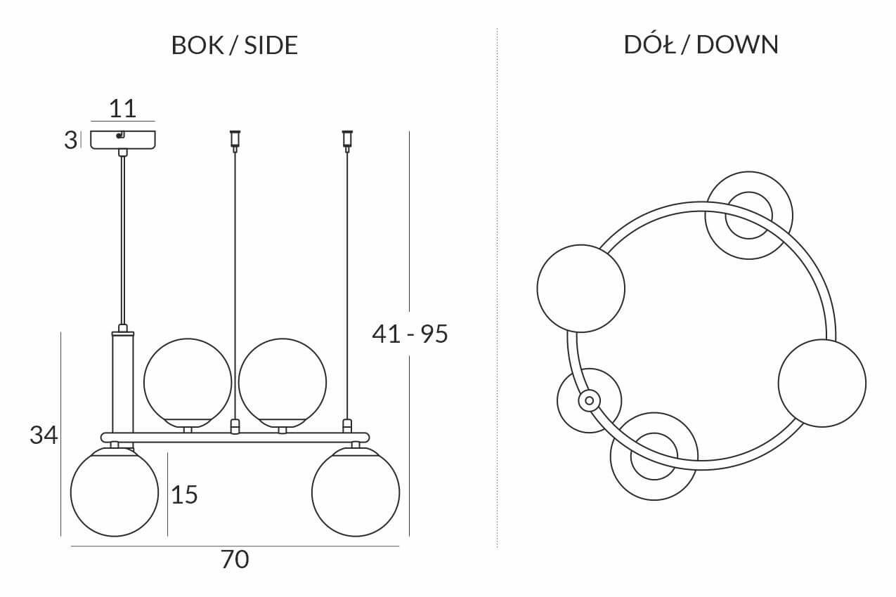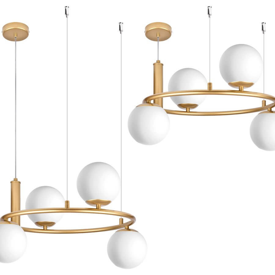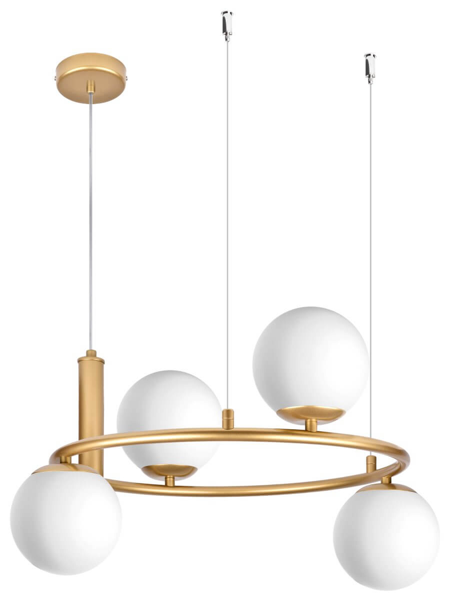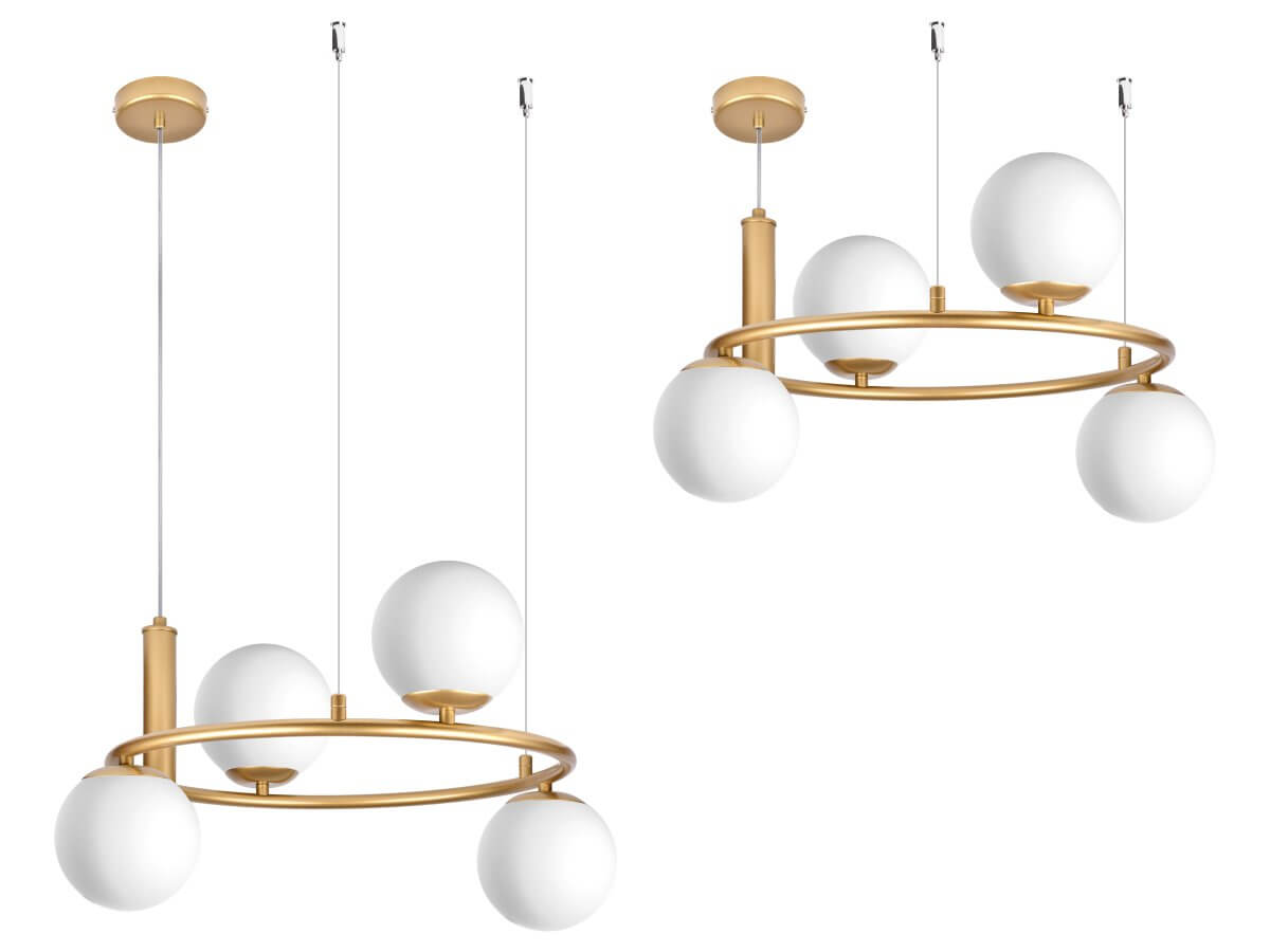 CERES 4 Lampa wisząca - Nowoczesna, szklane kule, 4xE14 – nowoczesna lampa do salonu i jadalni pomaga stworzyć przyjemną atmosferę i podkreśla charakter aranżacji. Dobrze odnajdzie się w jadalni, kuchni, salonie lub holu.