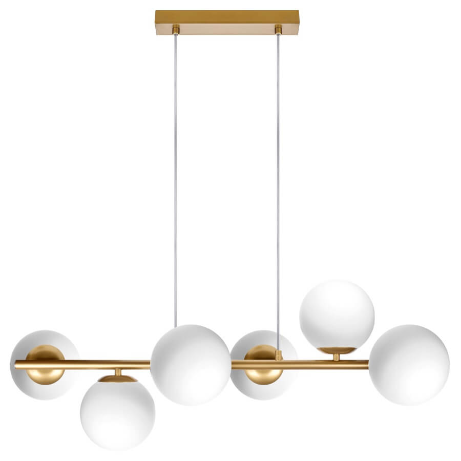 CERES 6 Lampa wisząca - Nowoczesna, szklane kule, 6xE14 – nowoczesna lampa do salonu i jadalni pomaga stworzyć przyjemną atmosferę i podkreśla charakter aranżacji. Dobrze odnajdzie się w jadalni, kuchni, salonie lub holu.