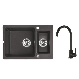 Celia - zlewozmywak 1,5 - komorowy z baterią granitową z wylewką U
