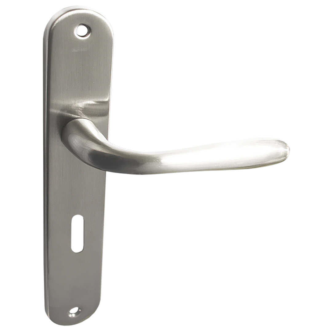 EWA klamka na szyldzie długim na klucz sprawdzi się w nowoczesnych i klasycznych aranżacjach, gdzie ważna jest trwałość, komfort chwytu oraz spójność z wyglądem skrzydła drzwiowego i okuć.