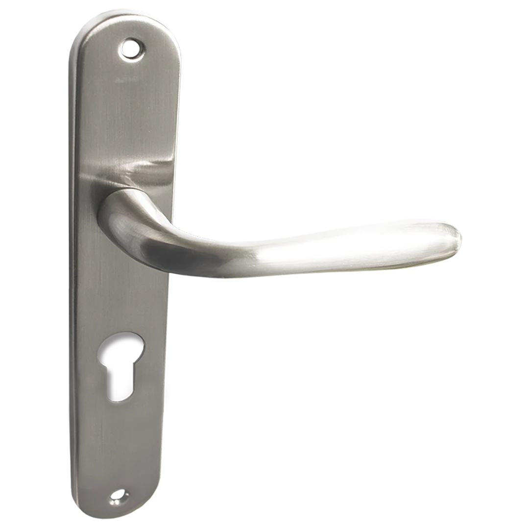 EWA klamka na szyldzie długim na wkładkę sprawdzi się w nowoczesnych i klasycznych aranżacjach, gdzie ważna jest trwałość, komfort chwytu oraz spójność z wyglądem skrzydła drzwiowego i okuć.