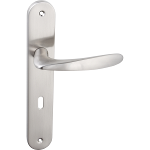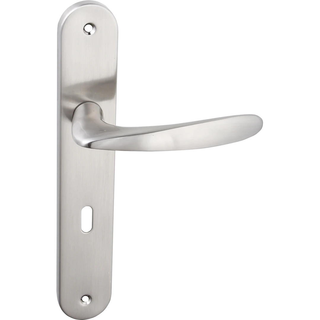GOA klamka na szyldzie długim na klucz sprawdzi się w nowoczesnych i klasycznych aranżacjach, gdzie ważna jest trwałość, komfort chwytu oraz spójność z wyglądem skrzydła drzwiowego i okuć.