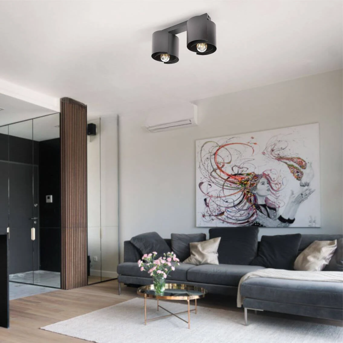 HUGO 2 Lampa sufitowa czarna – nowoczesna lampa do salonu i jadalni sprawdzi się jako element oświetlenia głównego lub uzupełniającego, w zależności od układu pomieszczenia. To propozycja do wnętrz, w których liczy się zarówno światło, jak i design.