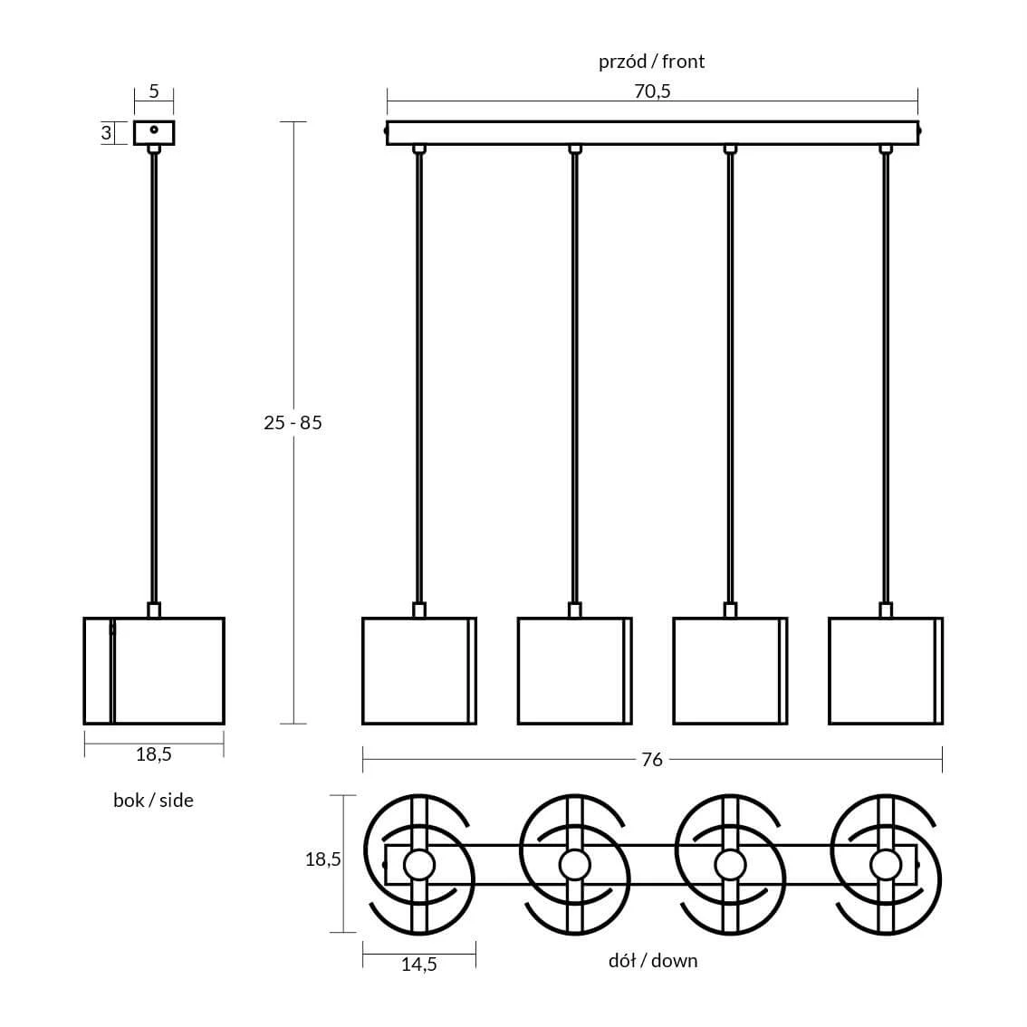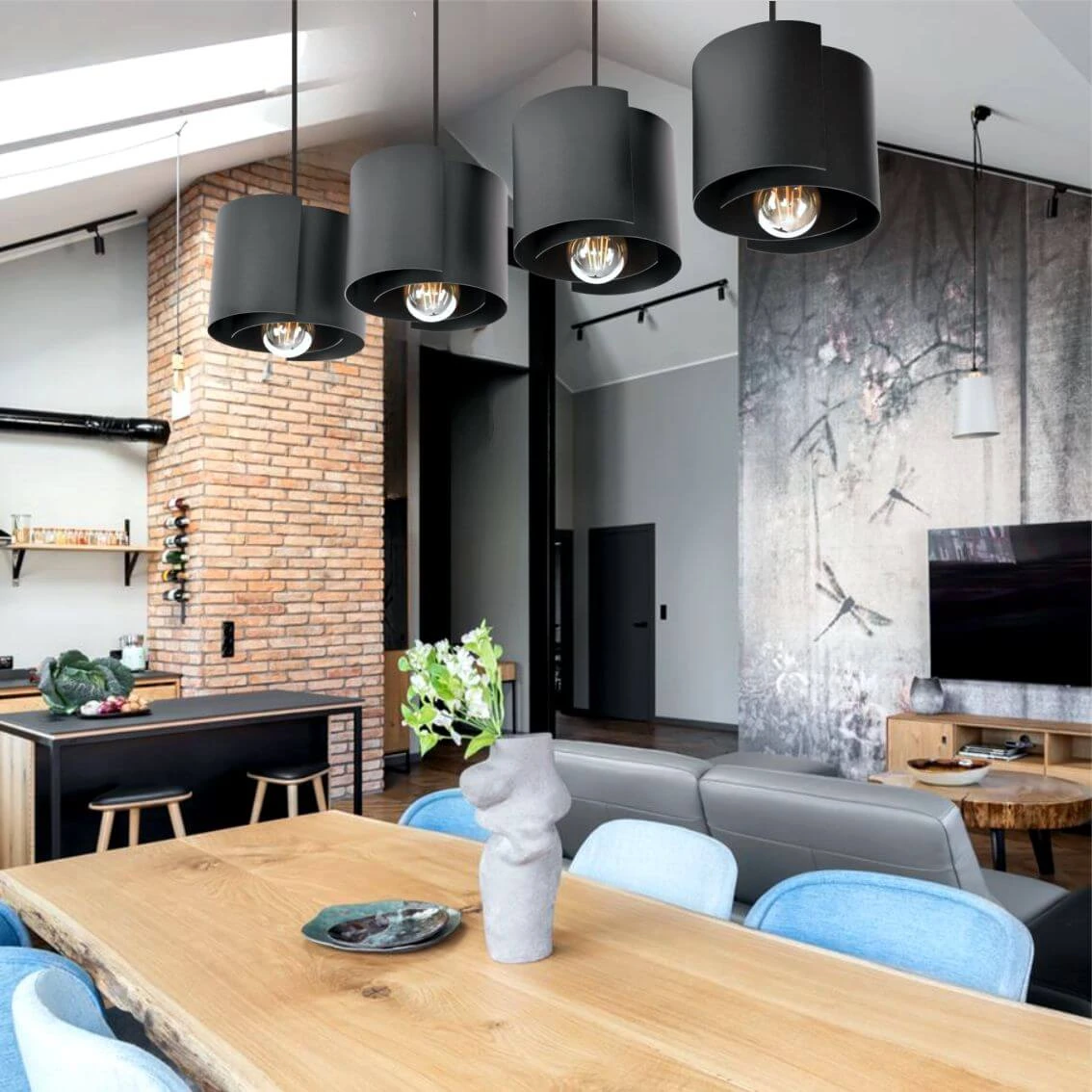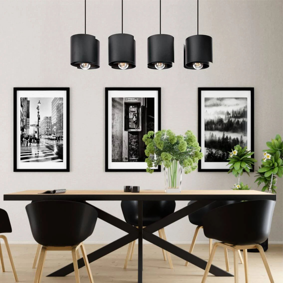 HUGO 4 Lampa wisząca czarna – nowoczesna lampa do salonu i jadalni pomaga stworzyć przyjemną atmosferę i podkreśla charakter aranżacji. Dobrze odnajdzie się w jadalni, kuchni, salonie lub holu.