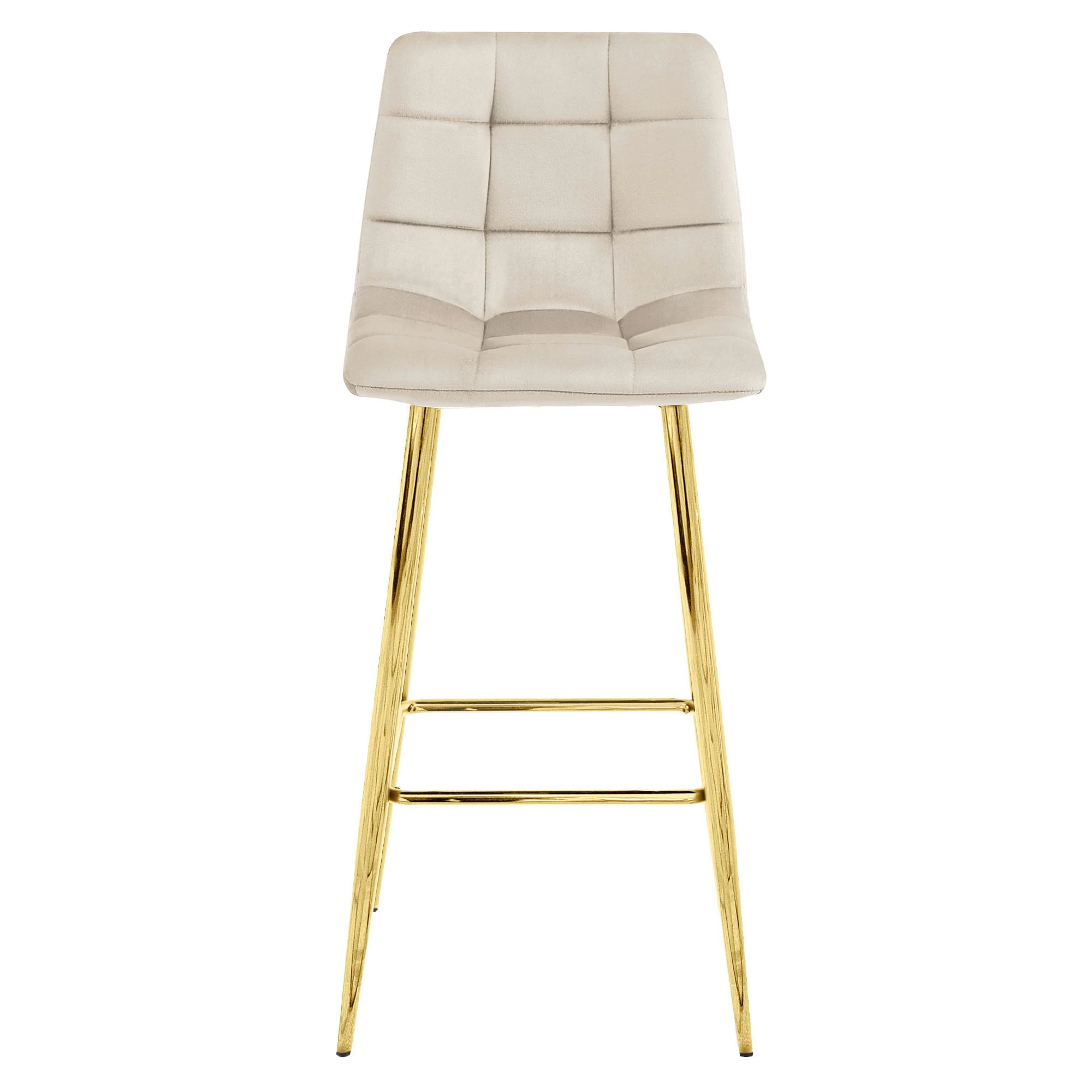 Hoker barowy ARCETO - aksamit beż nogi ZŁOTE to model stworzony do nowoczesnych kuchni i jadalni, gdzie liczy się wygodna wysokość siedziska, estetyczne wykończenie oraz spójny wygląd całej aranżacji.