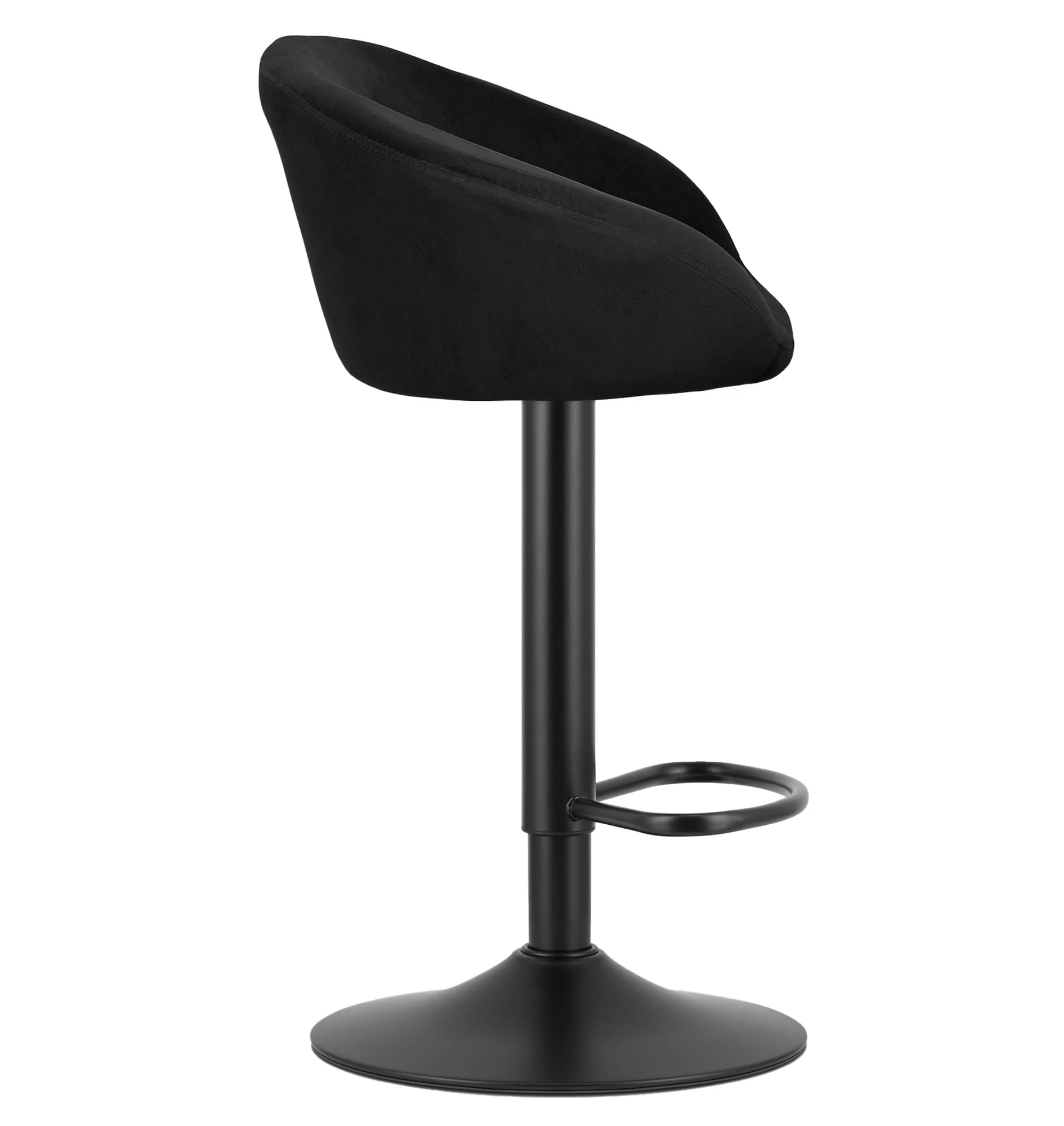 Hoker barowy EAST - aksamit czarny baza czarna to model stworzony do nowoczesnych kuchni i jadalni, gdzie liczy się wygodna wysokość siedziska, estetyczne wykończenie oraz spójny wygląd całej aranżacji.