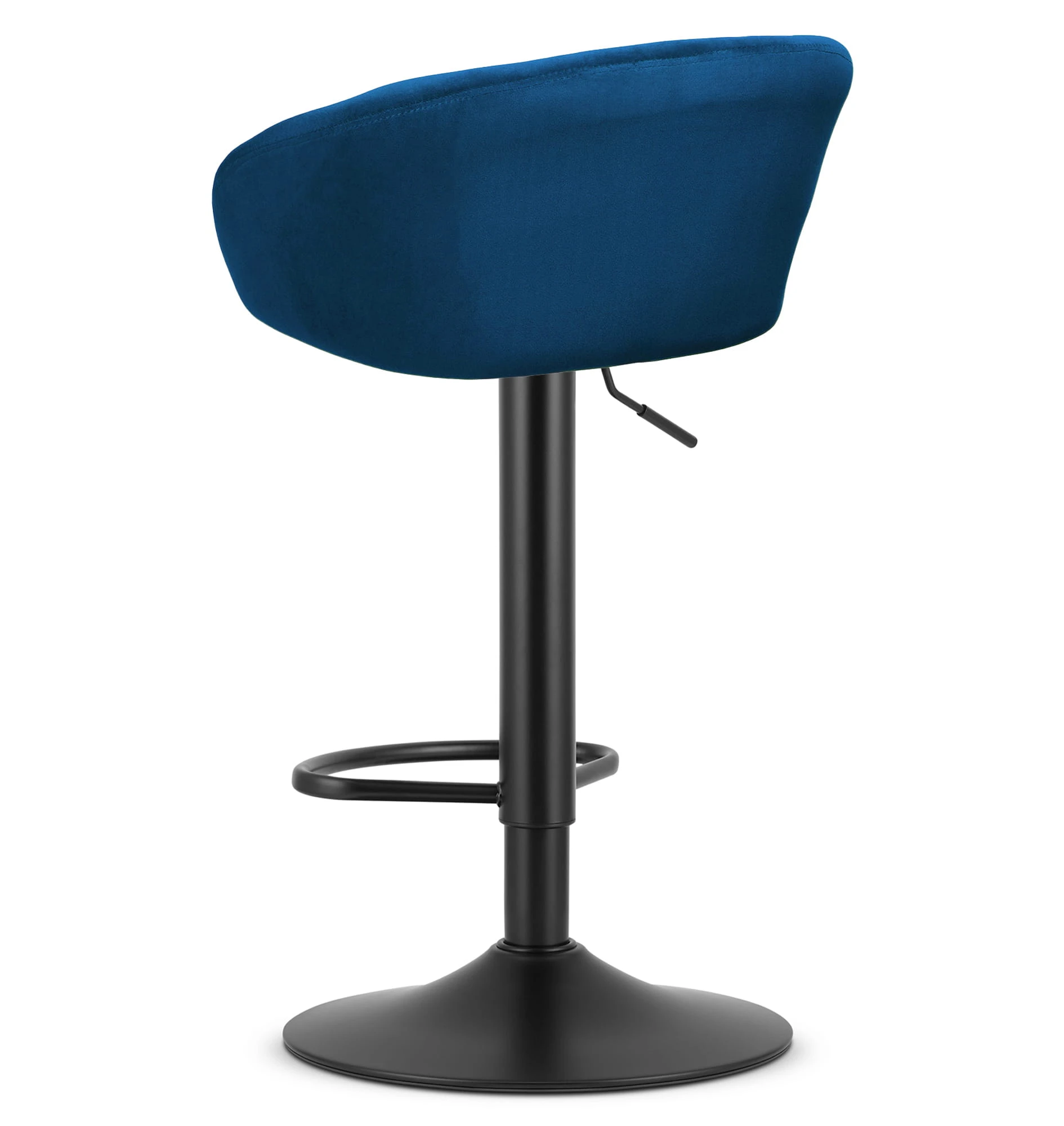 Hoker barowy EAST - aksamit granatowy baza czarna to model stworzony do nowoczesnych kuchni i jadalni, gdzie liczy się wygodna wysokość siedziska, estetyczne wykończenie oraz spójny wygląd całej aranżacji.