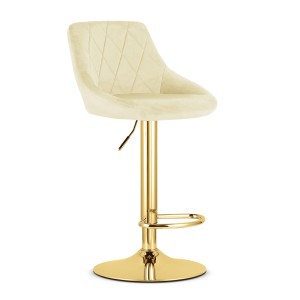 Hoker barowy KAST - aksamit beż baza złota to model stworzony do nowoczesnych kuchni i jadalni, gdzie liczy się wygodna wysokość siedziska, estetyczne wykończenie oraz spójny wygląd całej aranżacji.