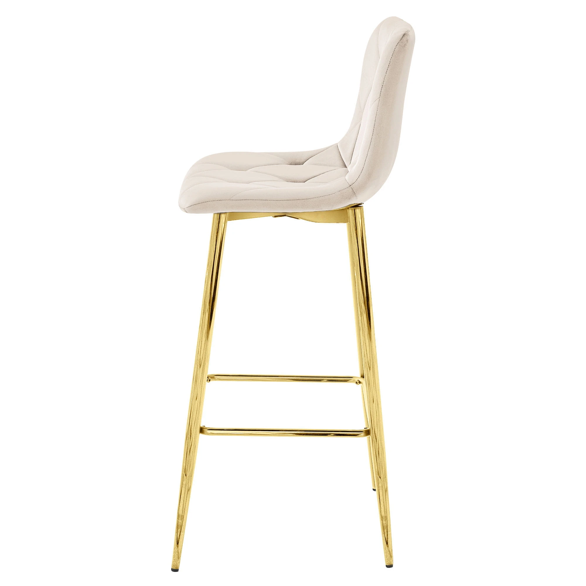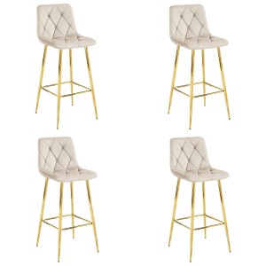 Hoker barowy NADO - aksamit beż nogi ZŁOTE to model stworzony do nowoczesnych kuchni i jadalni, gdzie liczy się wygodna wysokość siedziska, estetyczne wykończenie oraz spójny wygląd całej aranżacji.