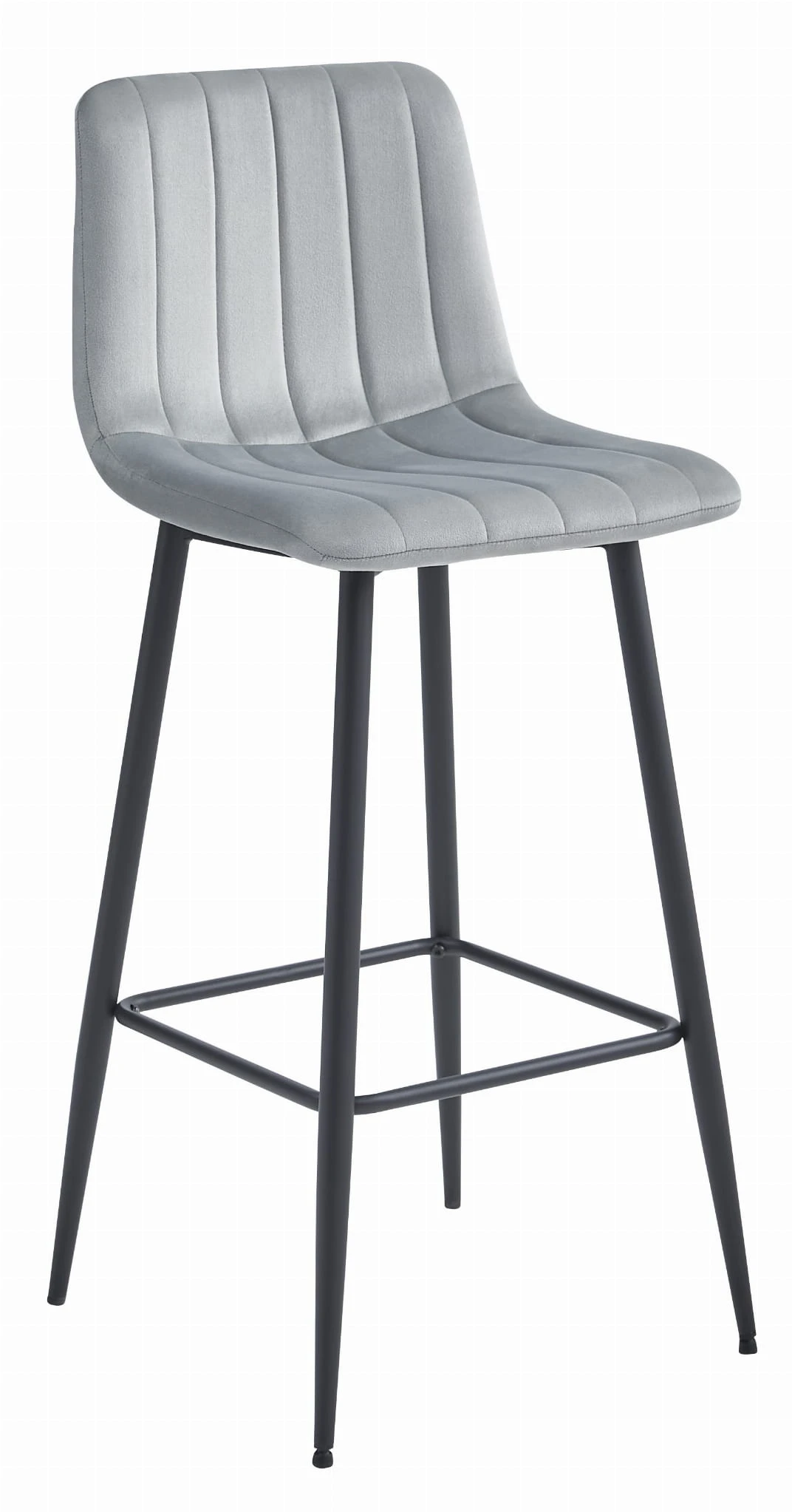 Hoker barowy POZZA - aksamit srebrno - szary nogi czarne to model stworzony do nowoczesnych kuchni i jadalni, gdzie liczy się wygodna wysokość siedziska, estetyczne wykończenie oraz spójny wygląd całej aranżacji.