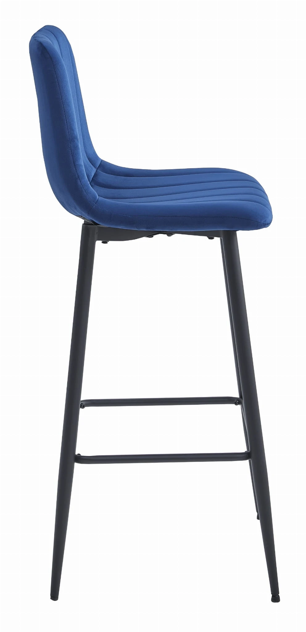 Hoker barowy POZZA - granat aksamit nogi czarne to model stworzony do nowoczesnych kuchni i jadalni, gdzie liczy się wygodna wysokość siedziska, estetyczne wykończenie oraz spójny wygląd całej aranżacji.