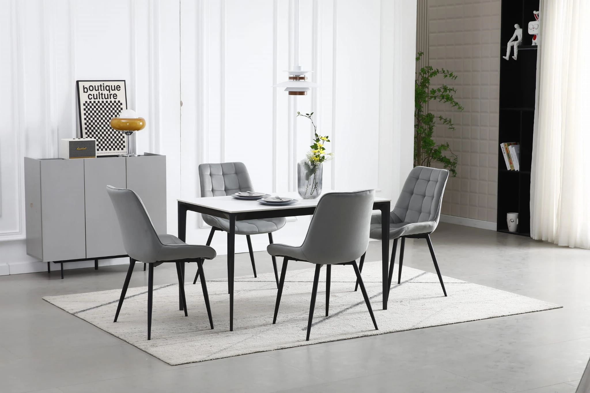Model Krzesło BERA - aksamit srebrno - szary nogi czarne został zaprojektowany z myślą o codziennym komforcie i atrakcyjnym wyglądzie wnętrza. Sprawdzi się przy stole w jadalni, w kuchni, w salonie, a także w strefie pracy lub toaletce.