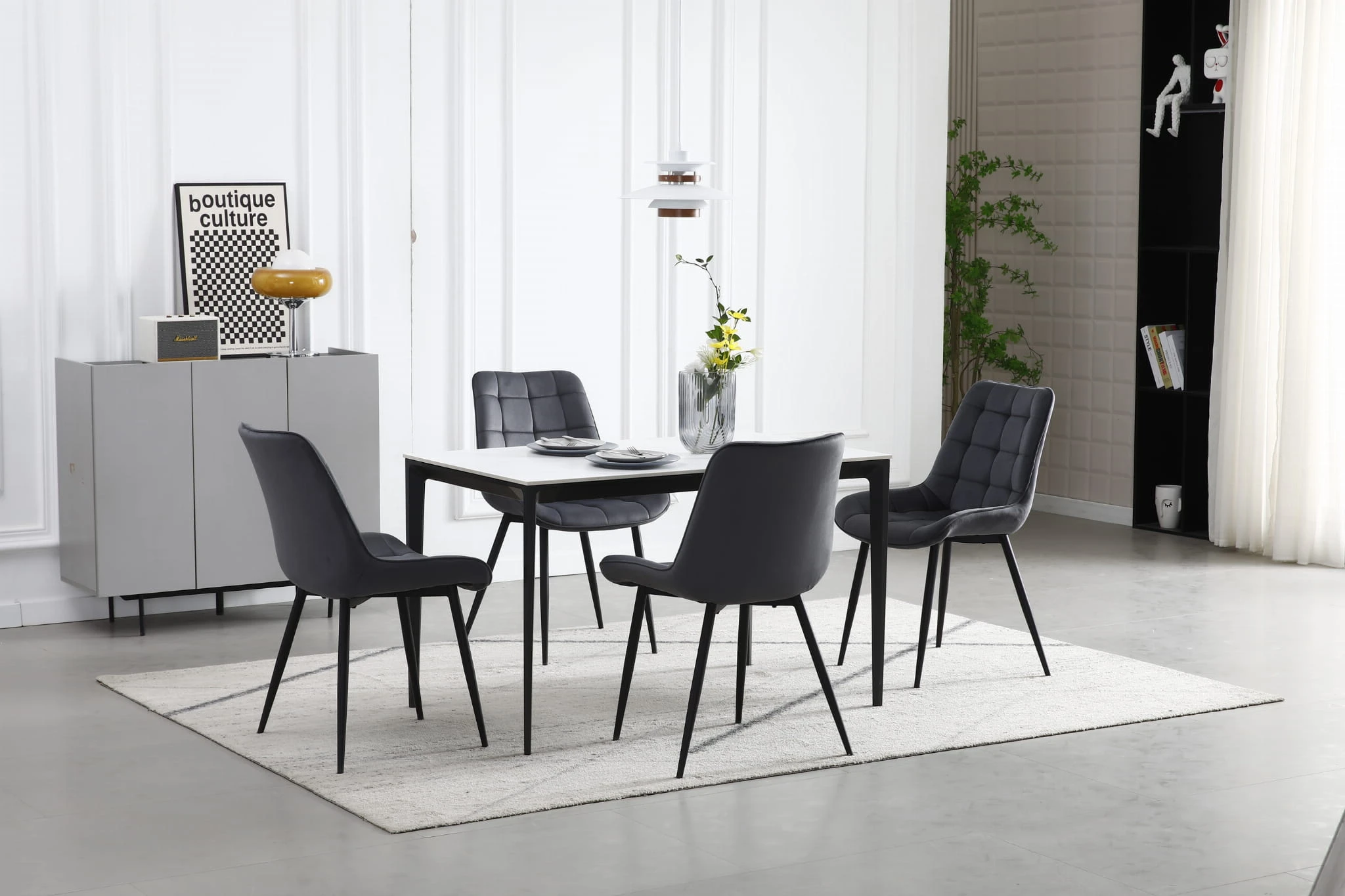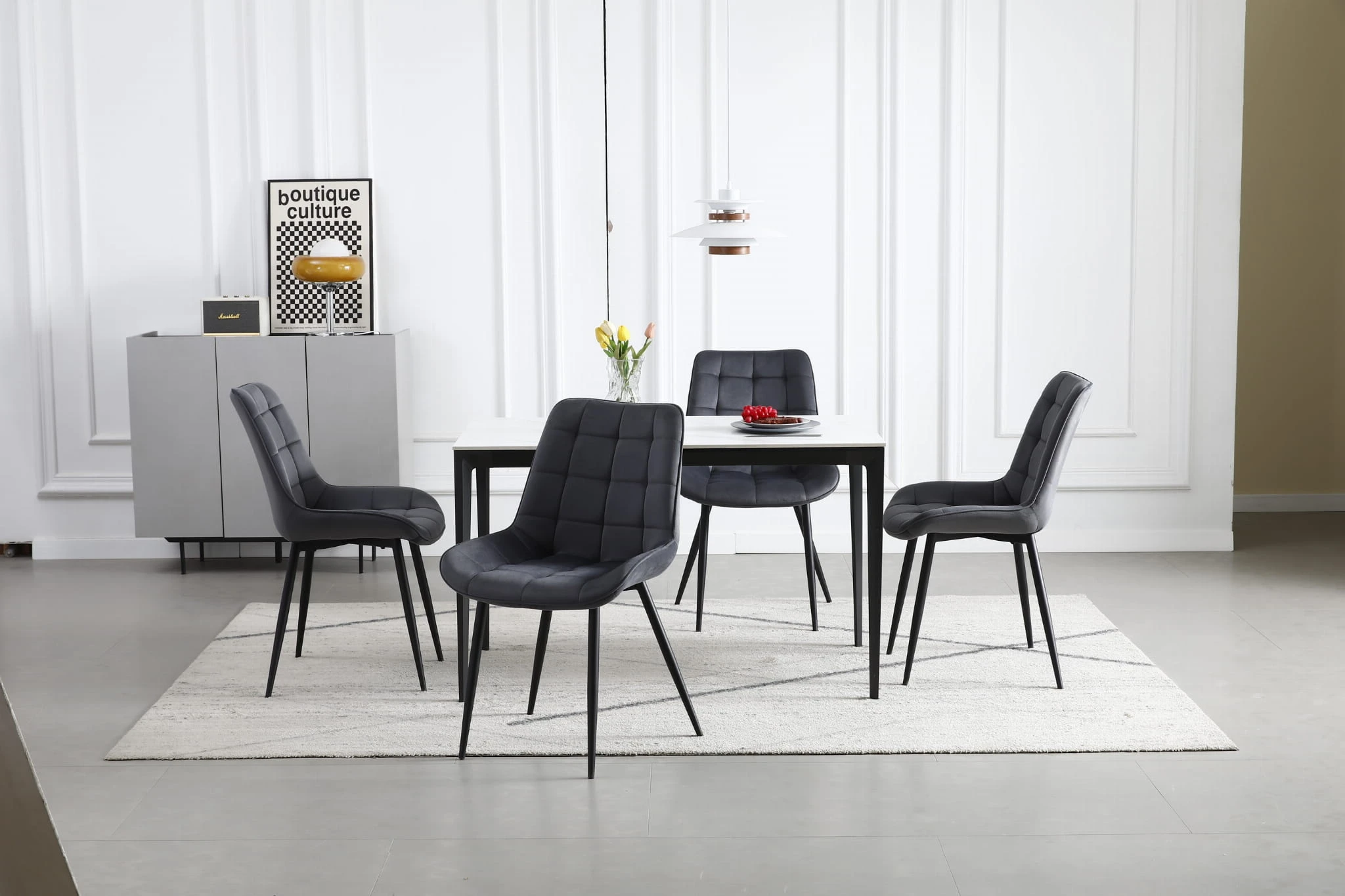Model Krzesło BERA - ciemny szary aksamit nogi czarne został zaprojektowany z myślą o codziennym komforcie i atrakcyjnym wyglądzie wnętrza. Sprawdzi się przy stole w jadalni, w kuchni, w salonie, a także w strefie pracy lub toaletce.