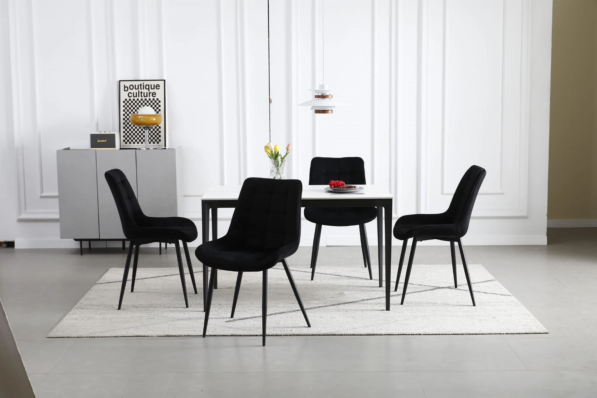 Model Krzesło BERA - czarny aksamit nogi czarne został zaprojektowany z myślą o codziennym komforcie i atrakcyjnym wyglądzie wnętrza. Sprawdzi się przy stole w jadalni, w kuchni, w salonie, a także w strefie pracy lub toaletce.