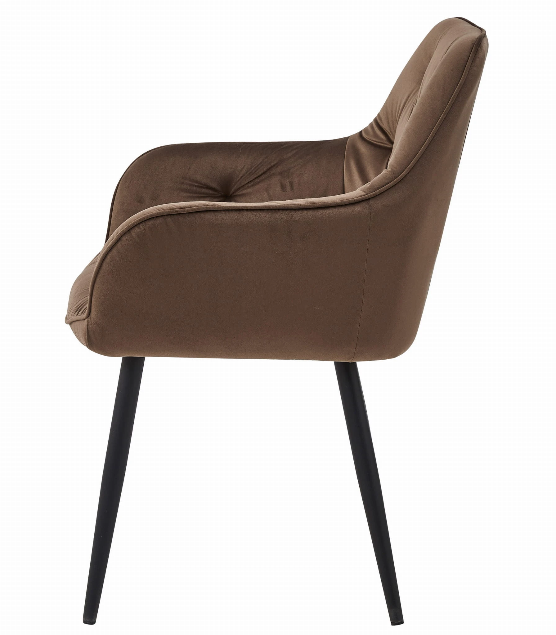 Model Krzesło JORK - brąz aksamit nogi czarne został zaprojektowany z myślą o codziennym komforcie i atrakcyjnym wyglądzie wnętrza. Sprawdzi się przy stole w jadalni, w kuchni, w salonie, a także w strefie pracy lub toaletce.