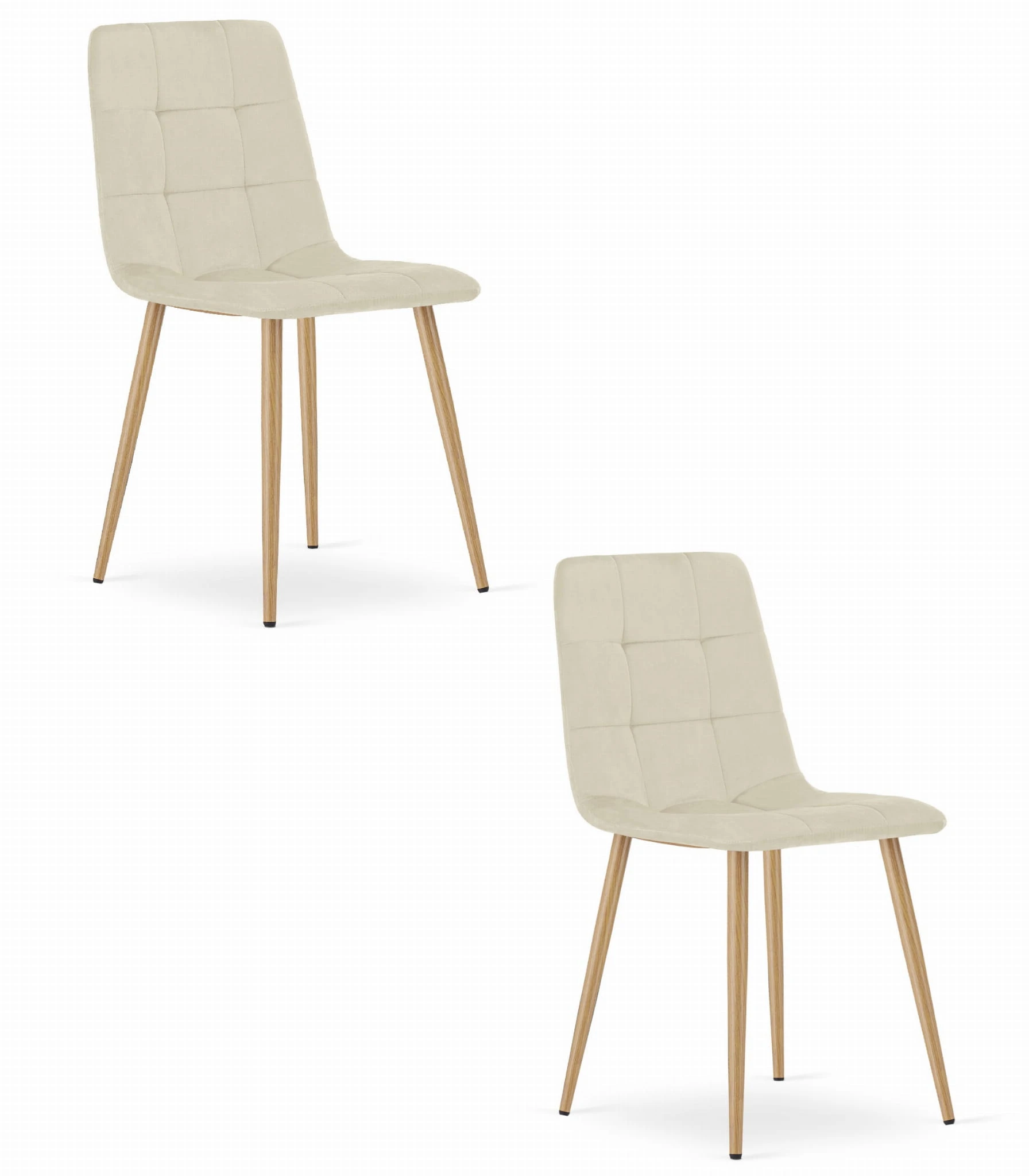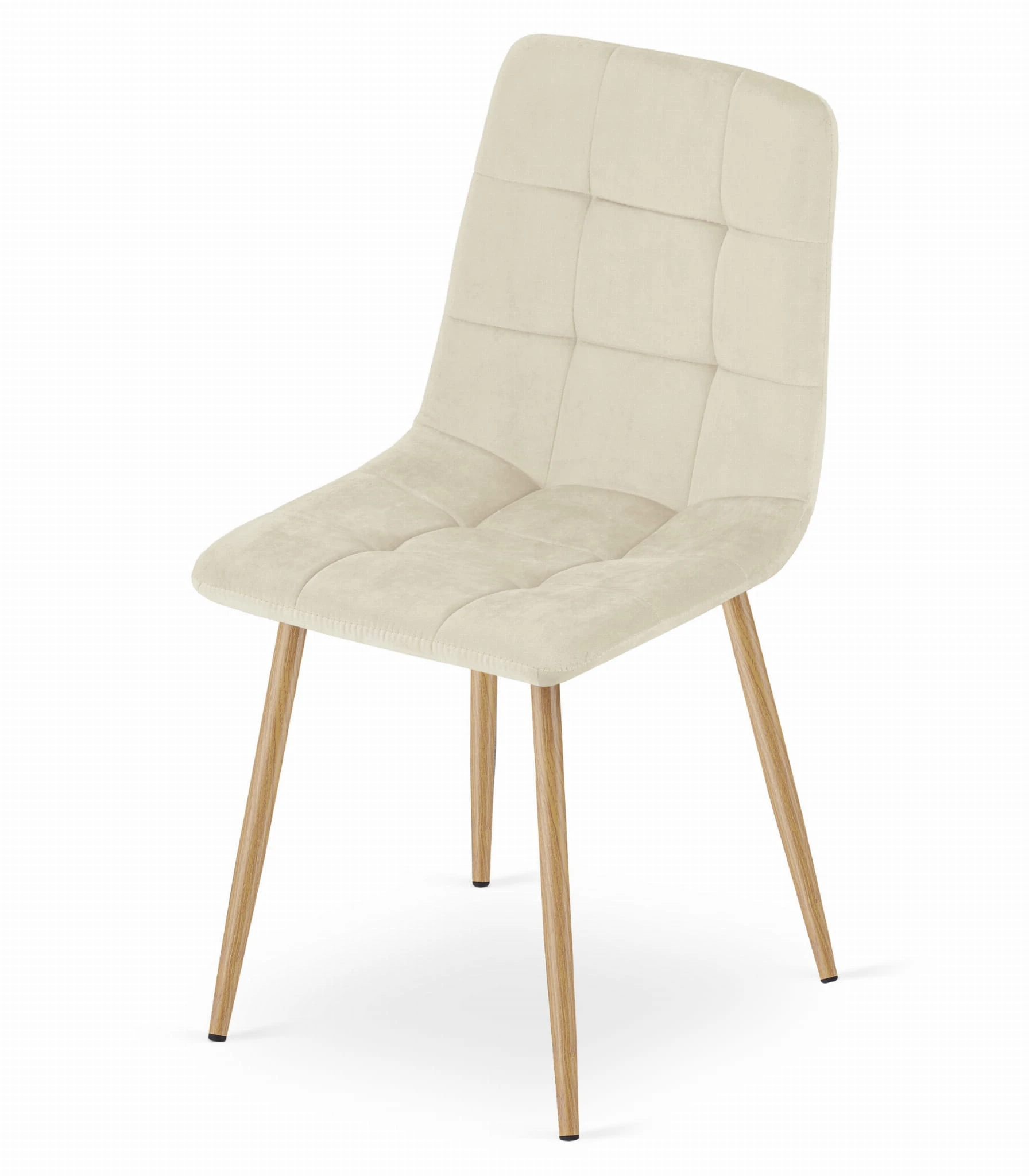 Krzesło KARA - jasny beż aksamit nogi kolor drewna