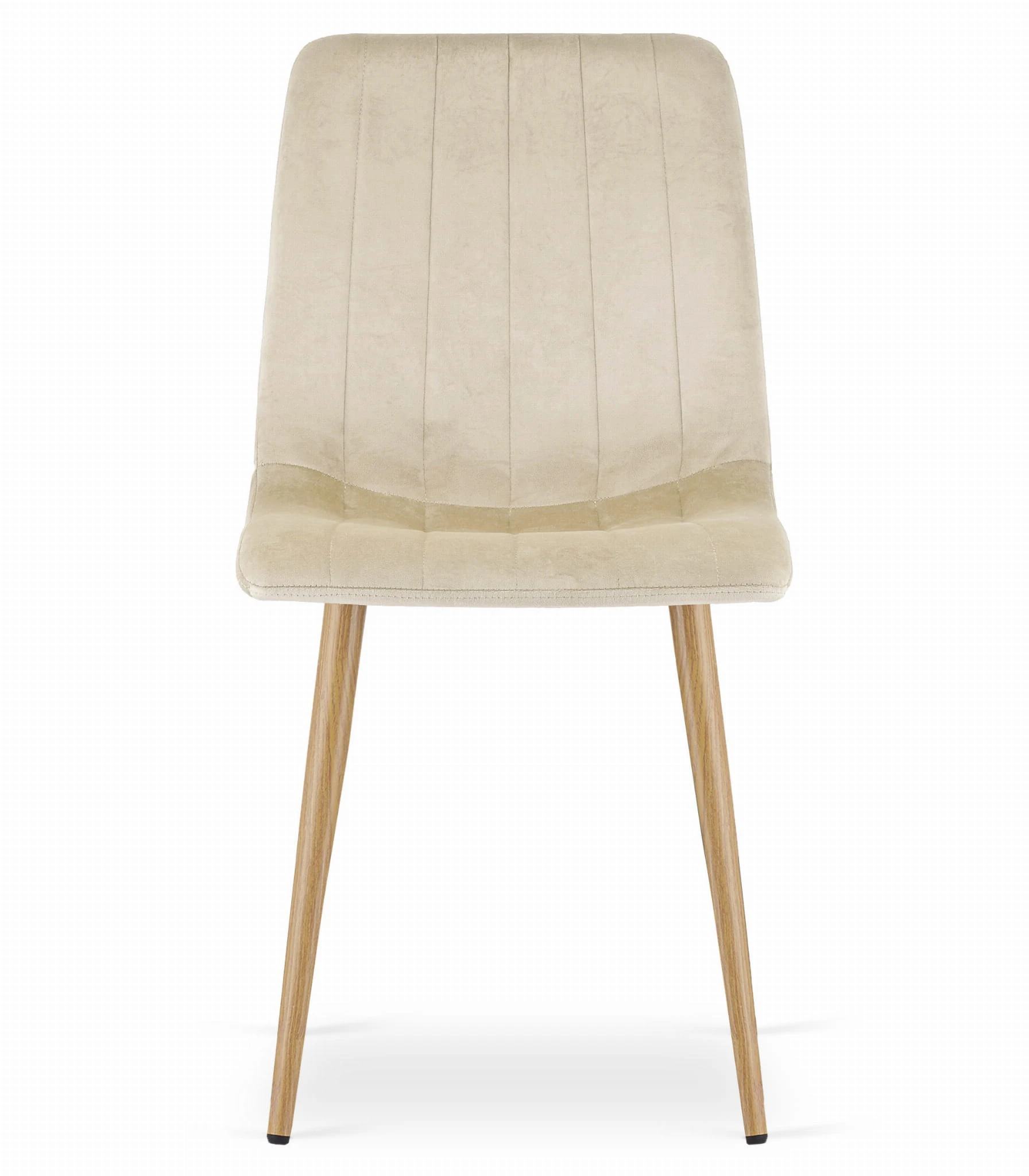 Krzesło LAVA - jasny beż aksamit nogi kolor drewna