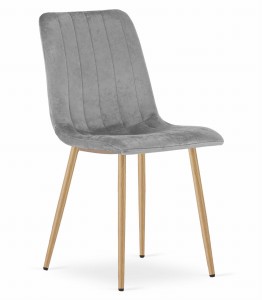 Krzesło LAVA - jasny szary aksamit nogi kolor drewna