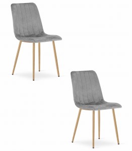 Krzesło LAVA - jasny szary aksamit nogi kolor drewna