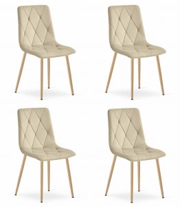 Krzesło LIBRA - jasny beż aksamit nogi kolor drewna