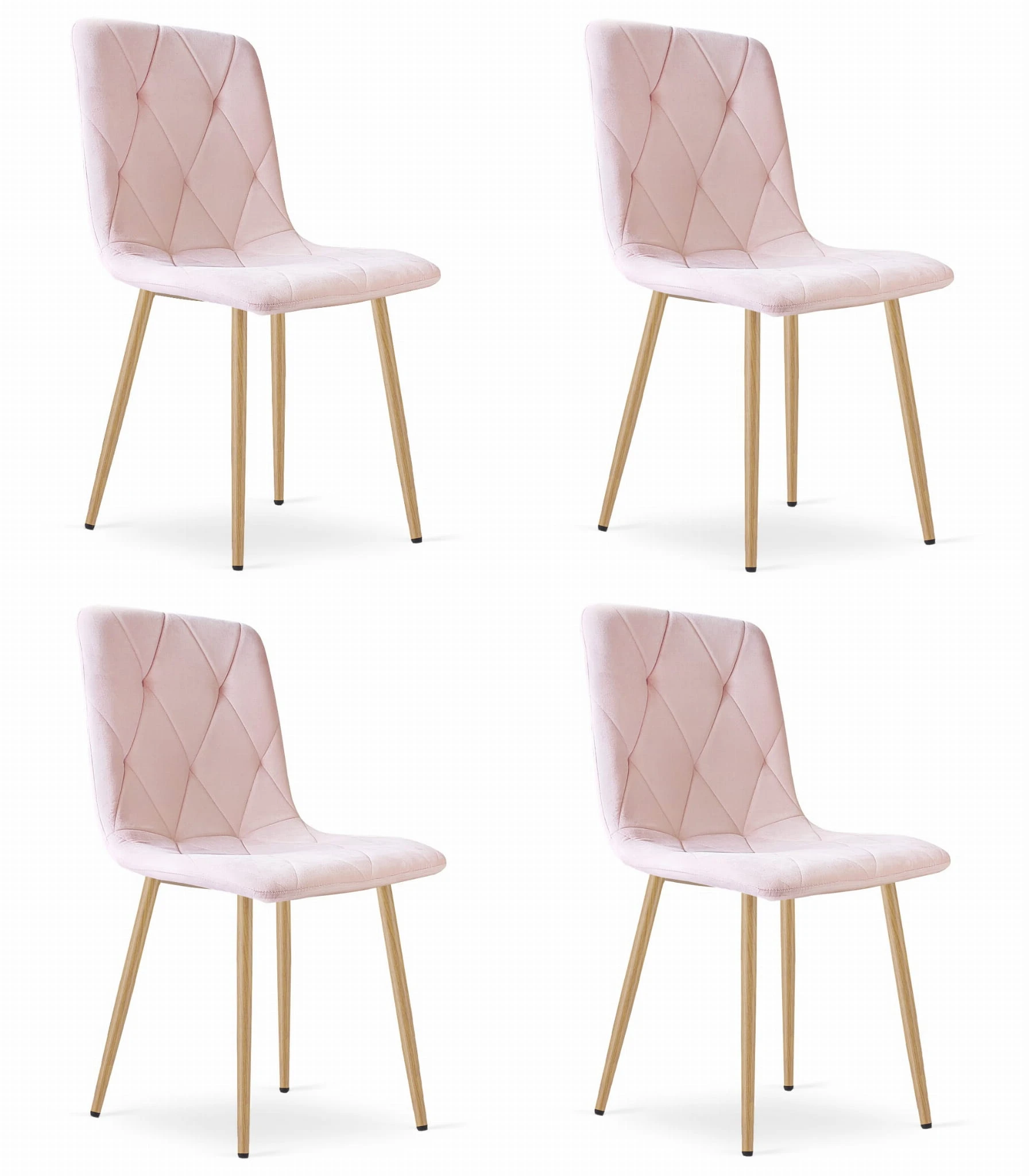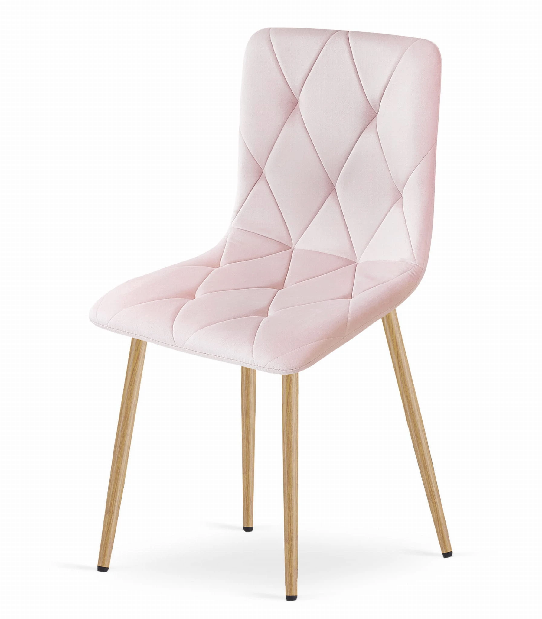 Model Krzesło LIBRA - jasny róż aksamit nogi kolor drewna został zaprojektowany z myślą o codziennym komforcie i atrakcyjnym wyglądzie wnętrza. Sprawdzi się przy stole w jadalni, w kuchni, w salonie, a także w strefie pracy lub toaletce.