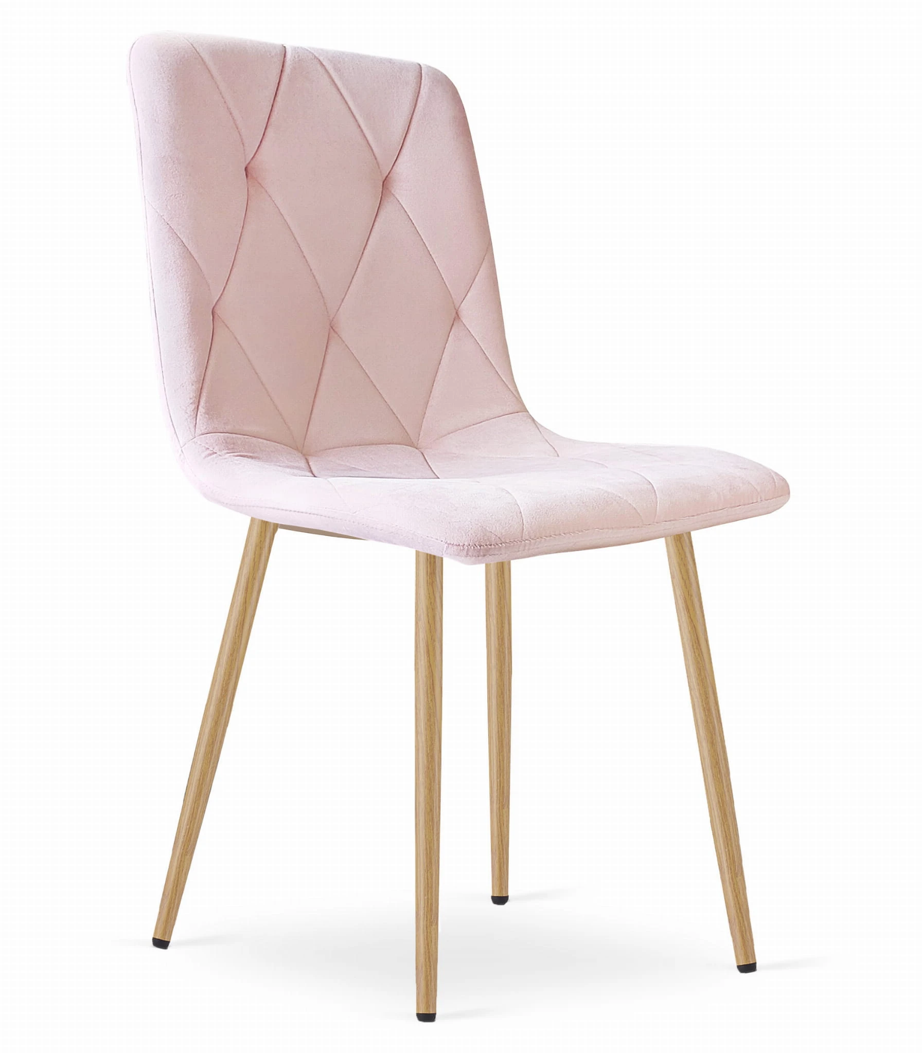 Krzesło LIBRA - jasny róż aksamit nogi kolor drewna