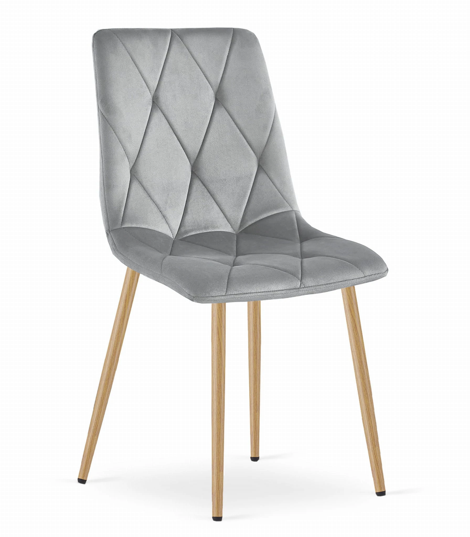 Krzesło LIBRA - jasny szary aksamit nogi kolor drewna