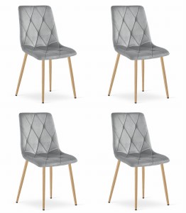 Krzesło LIBRA - jasny szary aksamit nogi kolor drewna