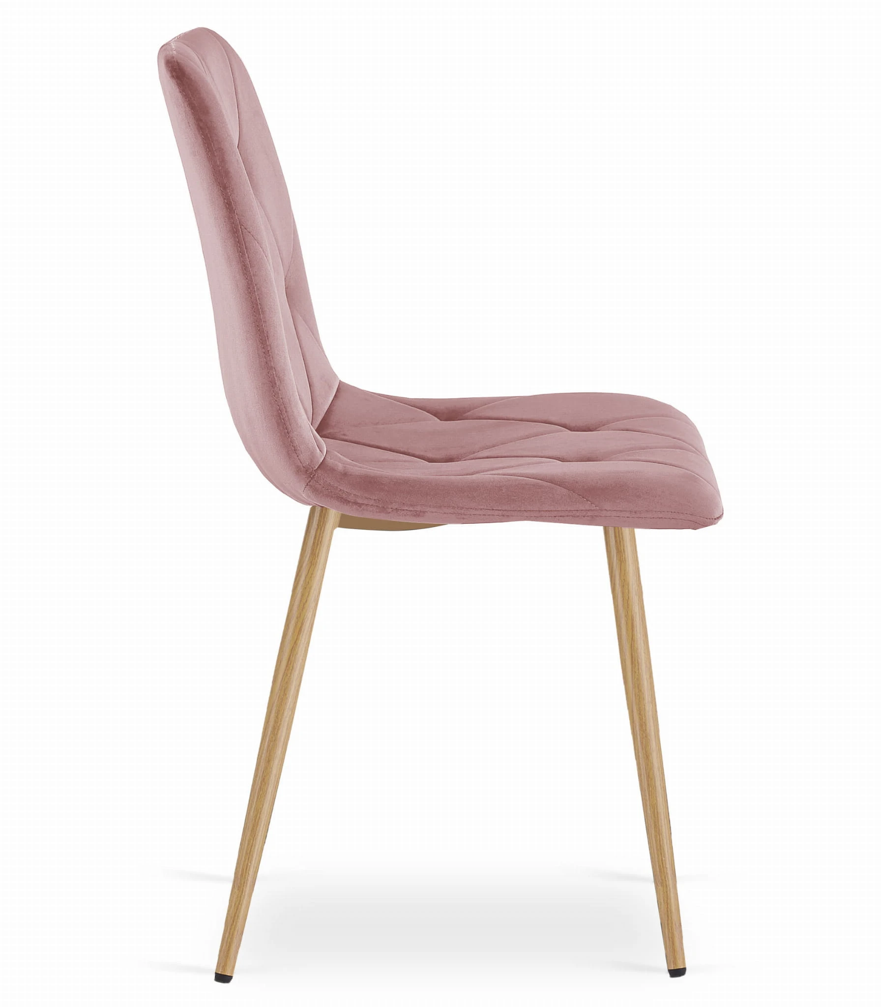 Krzesło LIBRA - różowy aksamit nogi kolor drewna
