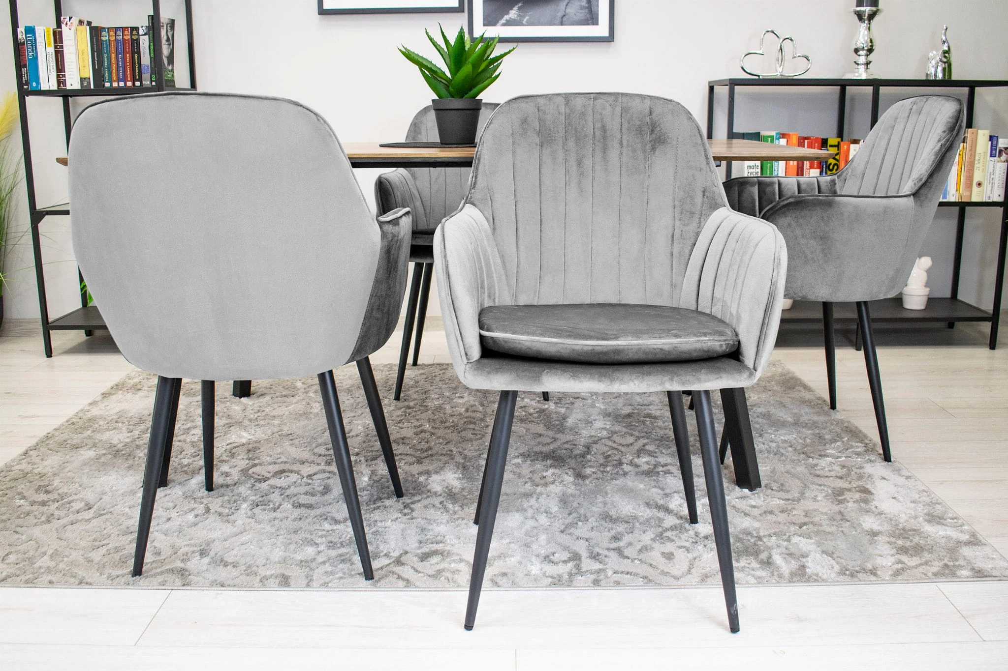 Krzesło LUGO - aksamit srebrno - szary nogi czarne