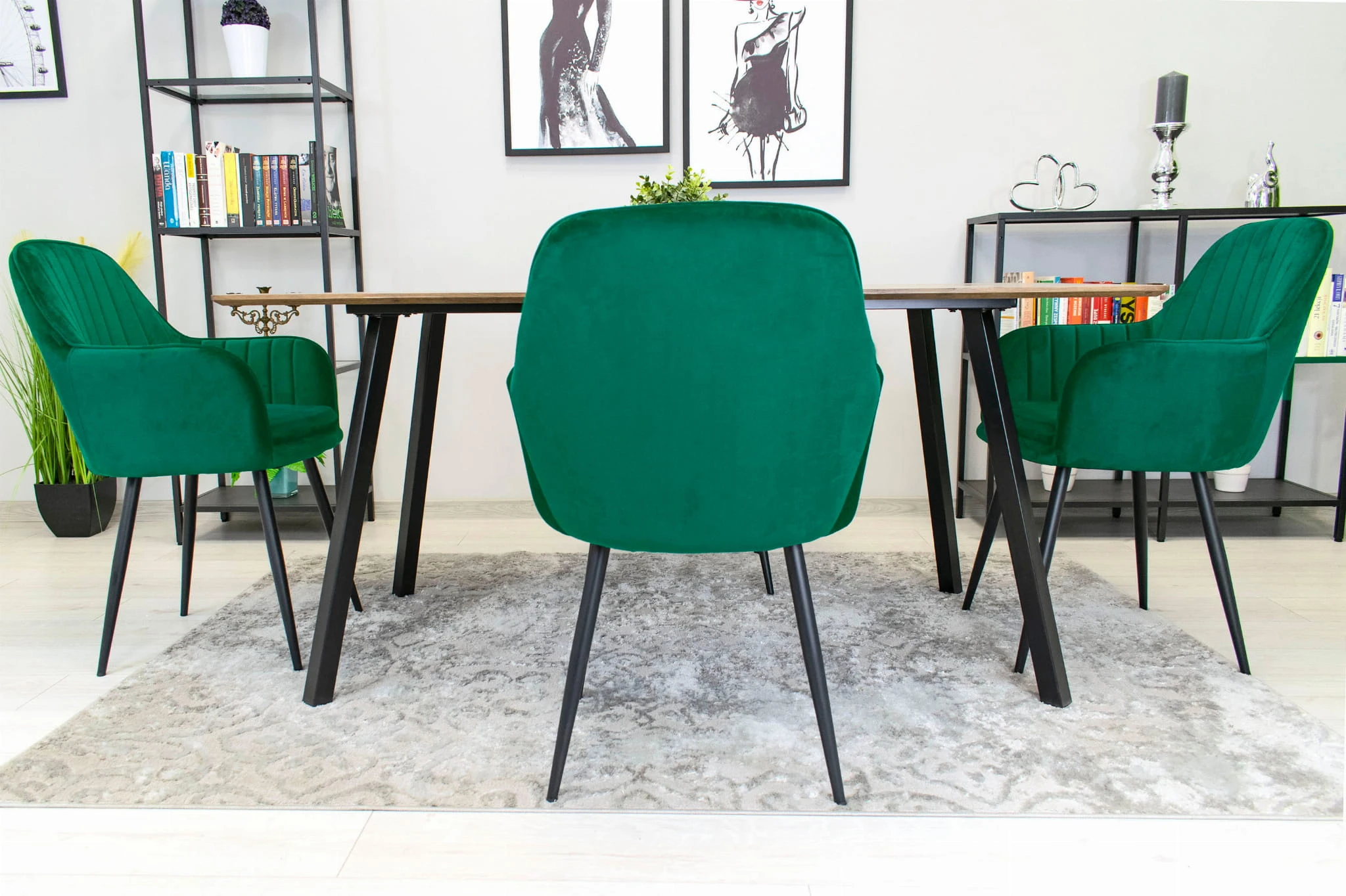 Model Krzesło LUGO - aksamit zielony nogi czarne został zaprojektowany z myślą o codziennym komforcie i atrakcyjnym wyglądzie wnętrza. Sprawdzi się przy stole w jadalni, w kuchni, w salonie, a także w strefie pracy lub toaletce.