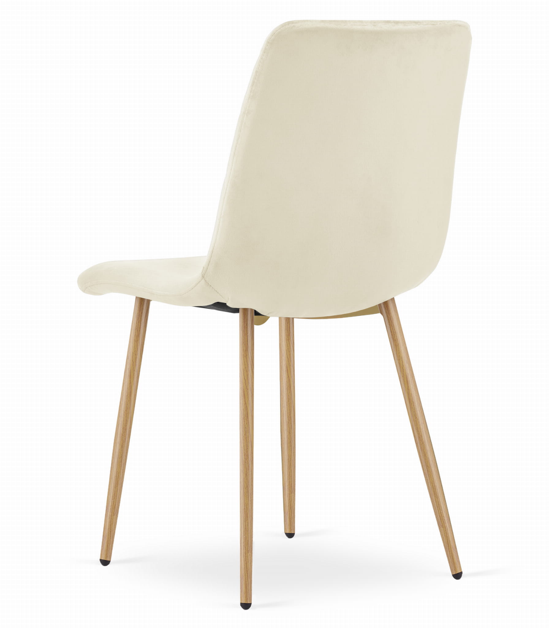 Model Krzesło TURIN - jasny beż aksamit nogi kolor drewna został zaprojektowany z myślą o codziennym komforcie i atrakcyjnym wyglądzie wnętrza. Sprawdzi się przy stole w jadalni, w kuchni, w salonie, a także w strefie pracy lub toaletce.