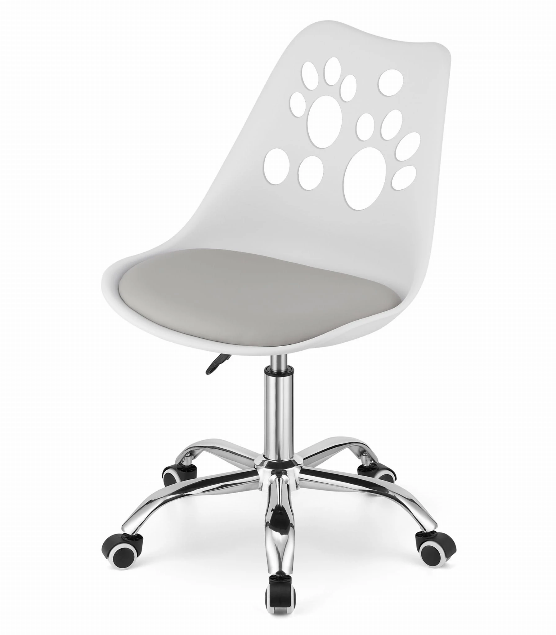 Model Krzesło obrotowe PRINT - biało - szare został zaprojektowany z myślą o codziennym komforcie i atrakcyjnym wyglądzie wnętrza. Sprawdzi się przy stole w jadalni, w kuchni, w salonie, a także w strefie pracy lub toaletce.