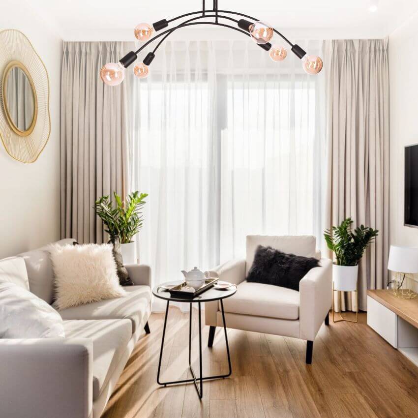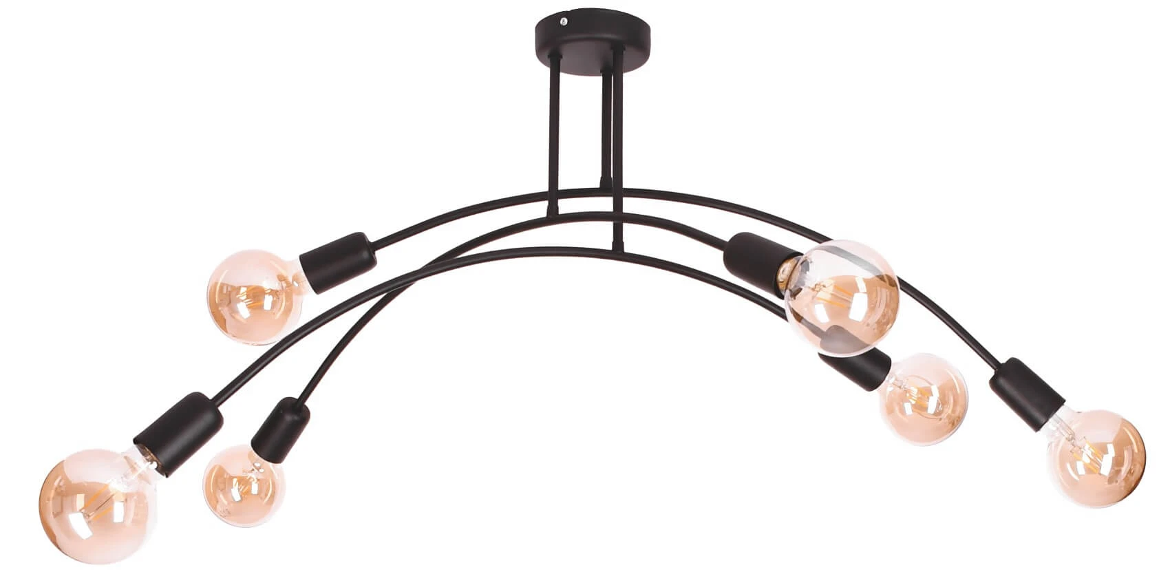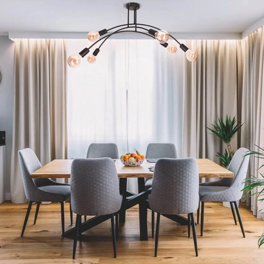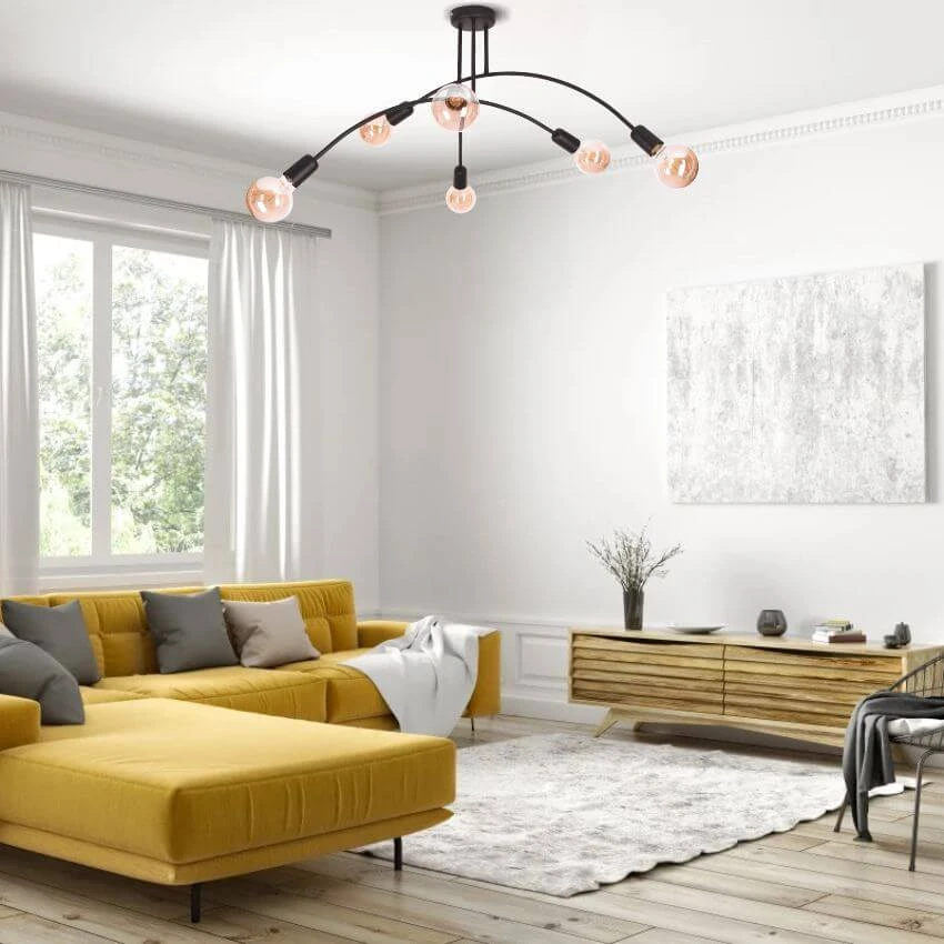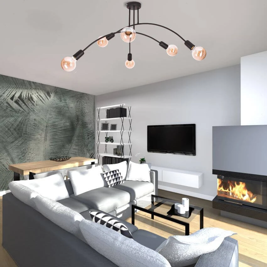 ŁUK 6 Lampa sufitowa, Żyrandol - Loftowy, czarny, 6xE27 – nowoczesna lampa do salonu i jadalni sprawdzi się jako element oświetlenia głównego lub uzupełniającego, w zależności od układu pomieszczenia. To propozycja do wnętrz, w których liczy się zarówno światło, jak i design.