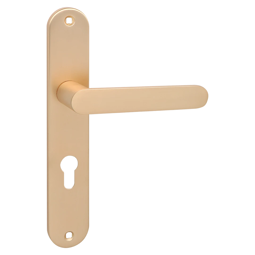 MALAGA klamka na szyldzie długim na wkładkę sprawdzi się w nowoczesnych i klasycznych aranżacjach, gdzie ważna jest trwałość, komfort chwytu oraz spójność z wyglądem skrzydła drzwiowego i okuć.