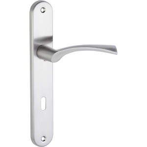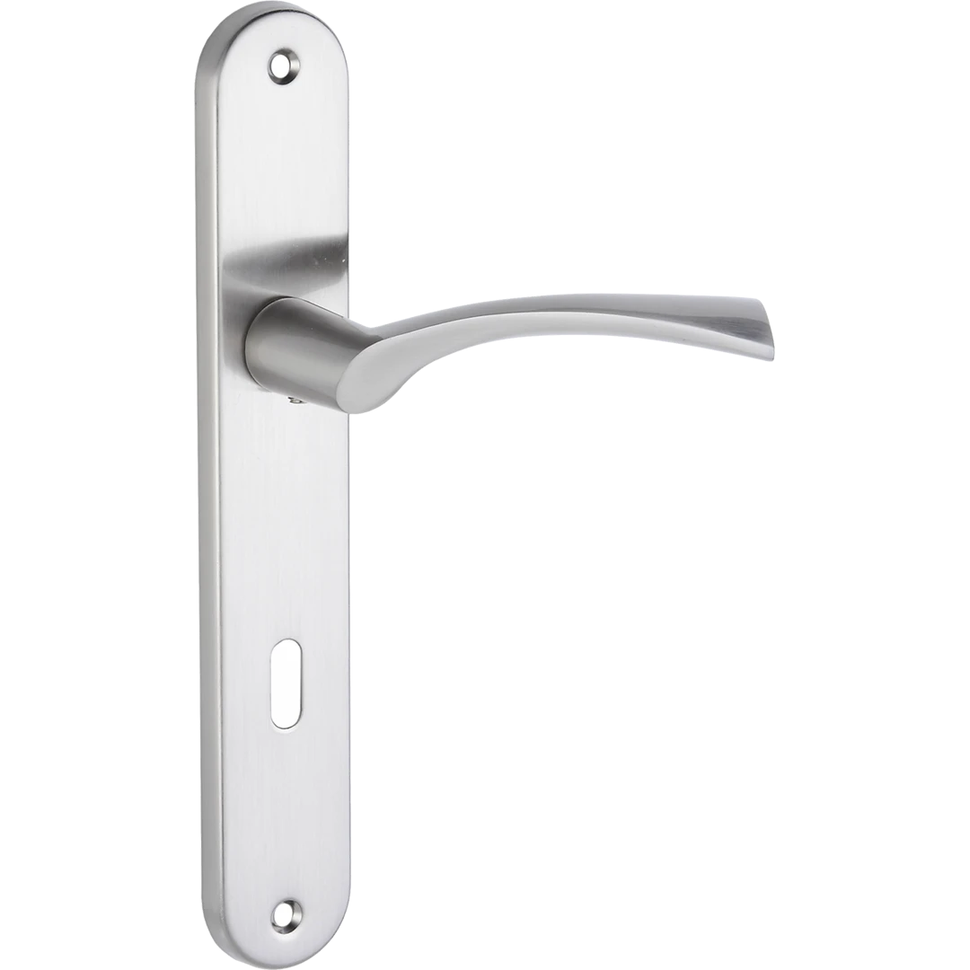NOA klamka na szyldzie długim na klucz sprawdzi się w nowoczesnych i klasycznych aranżacjach, gdzie ważna jest trwałość, komfort chwytu oraz spójność z wyglądem skrzydła drzwiowego i okuć.