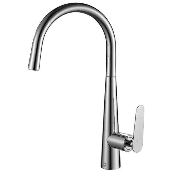 Nalda - bateria zlewozmywakowa stojąca z wylewką U dobrze sprawdzi się w kuchni, gdzie liczy się swoboda ruchu, wygoda mycia oraz nowoczesny wygląd całej strefy roboczej. To połączenie funkcjonalności i estetyki.