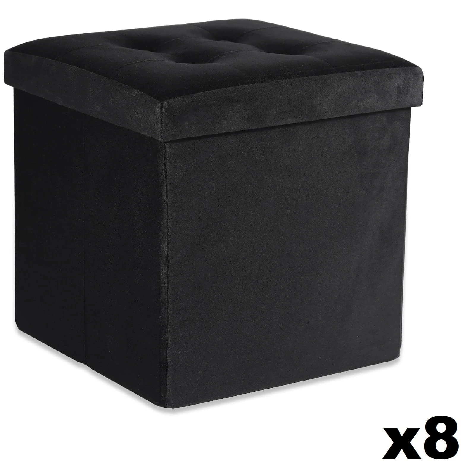 Pufa składana L z guzikami - 38x38x38cm aksamit czarna