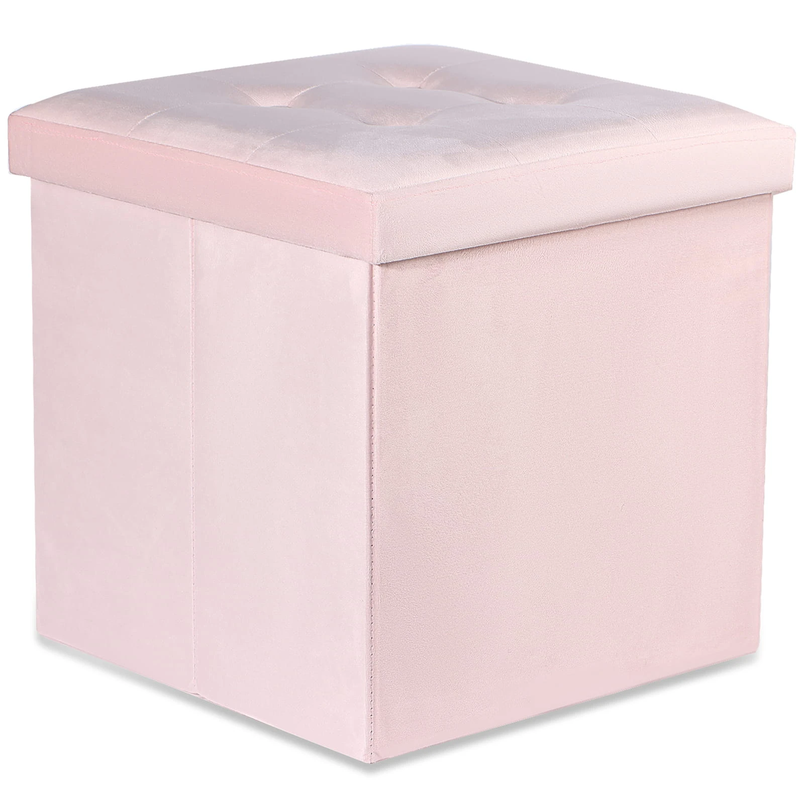 Pufa składana L z guzikami - 38x38x38cm aksamit róż