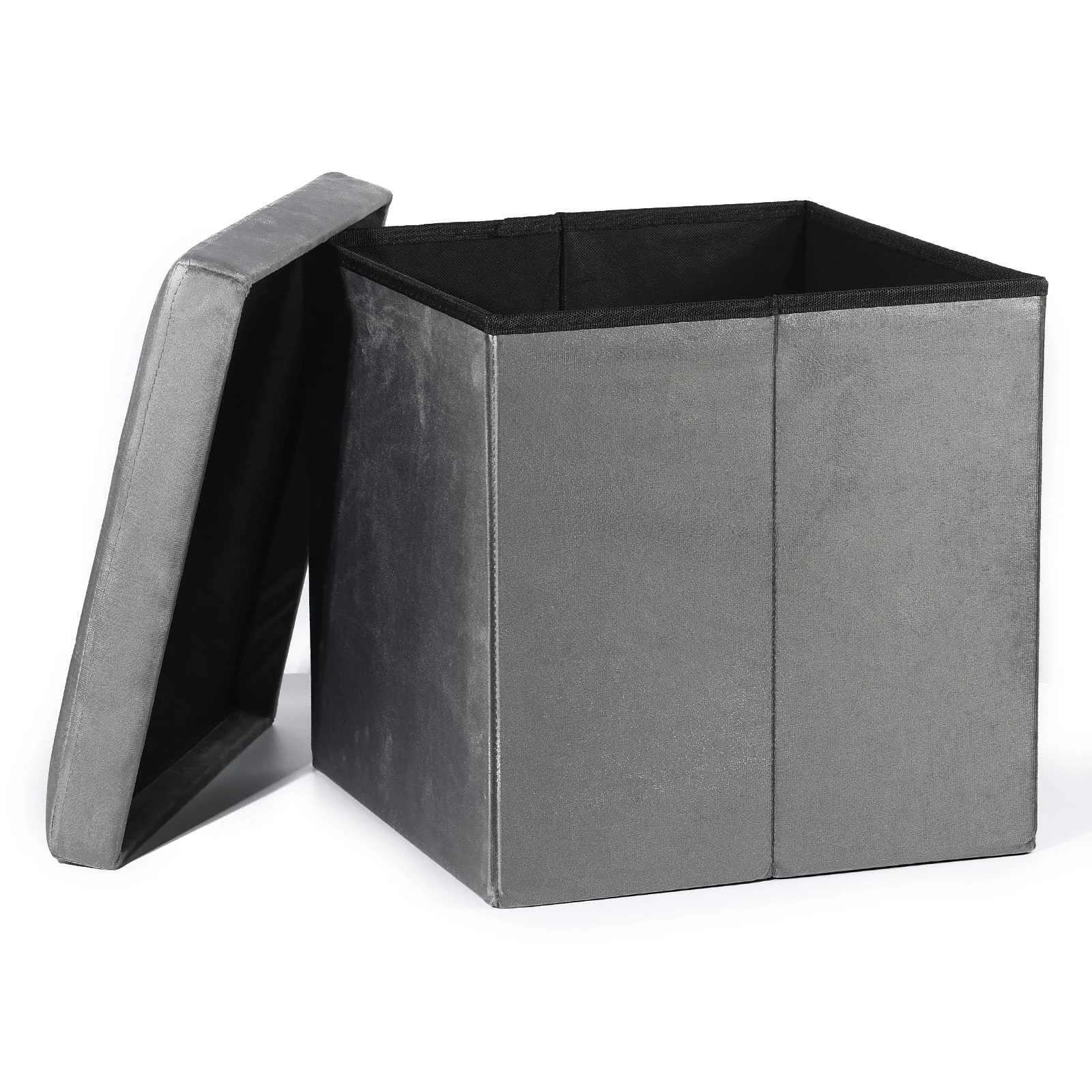 Pufa składana L z guzikami - 38x38x38cm aksamit szara