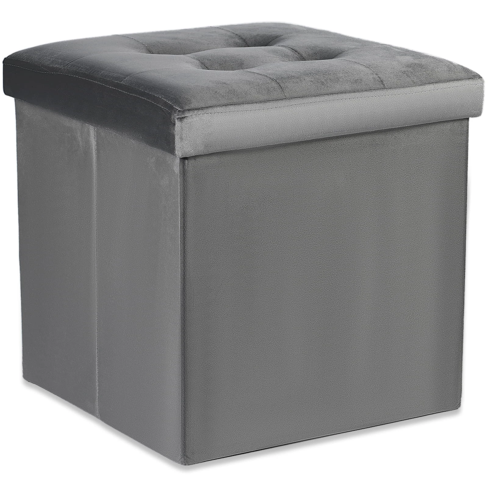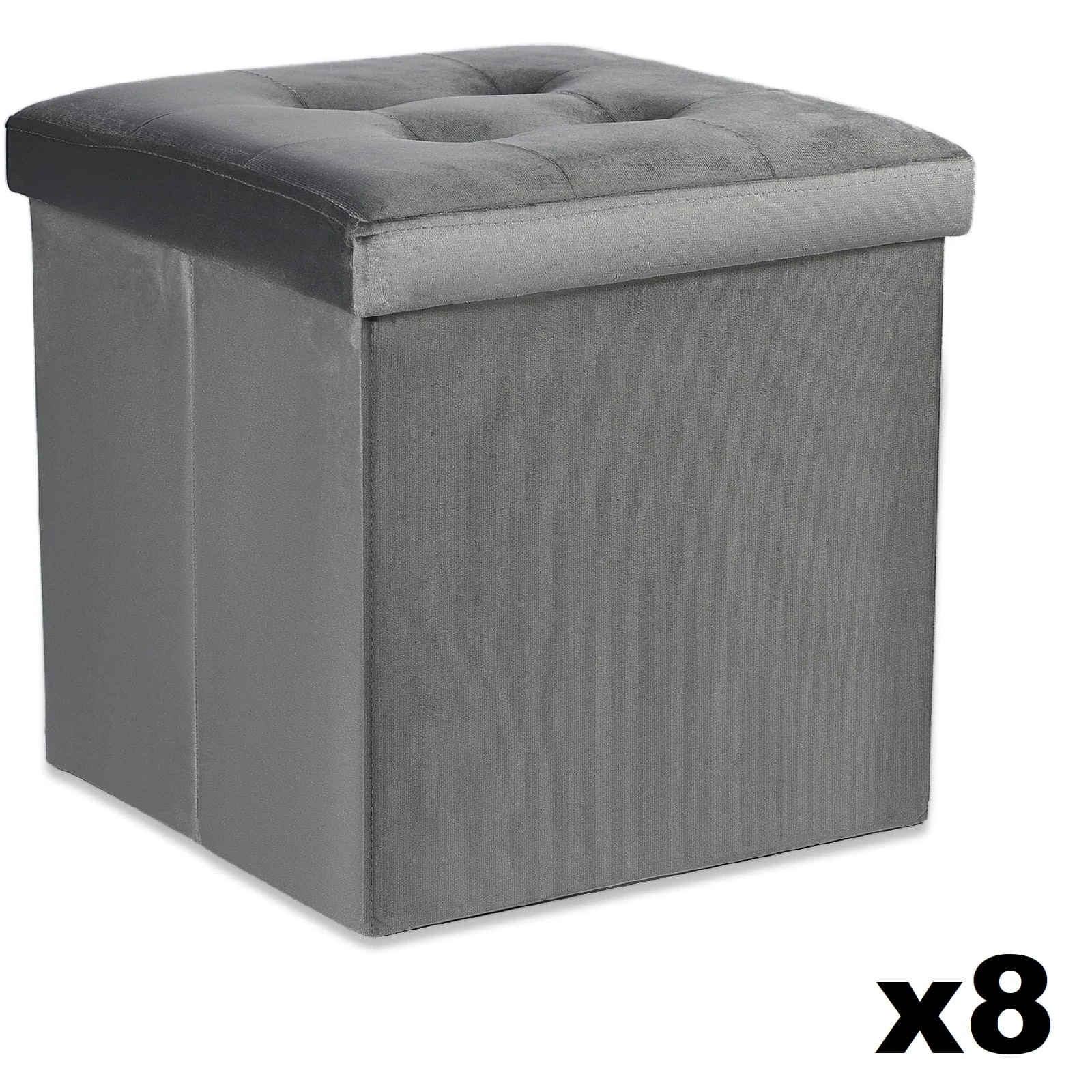 Pufa składana L z guzikami - 38x38x38cm aksamit szara