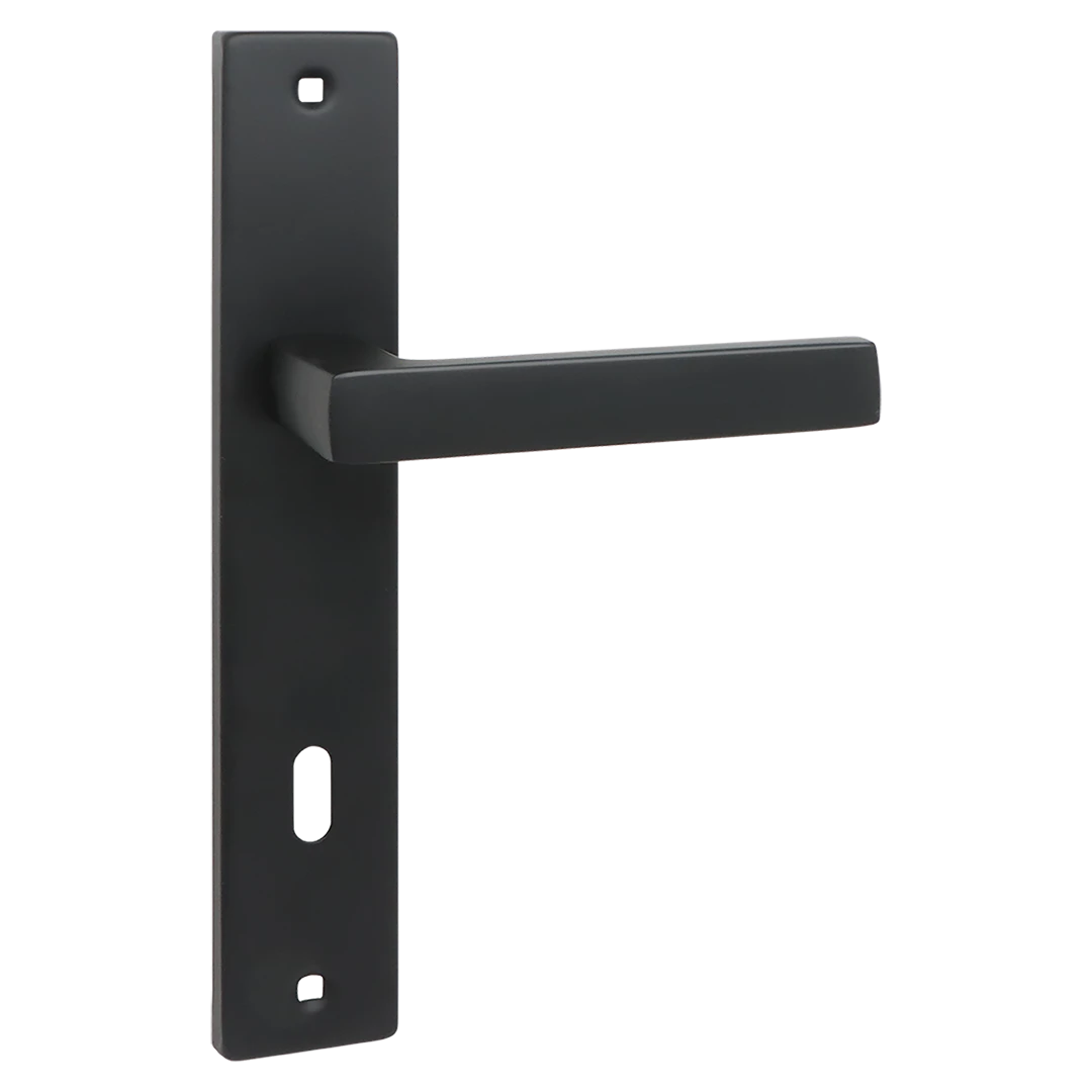 RANDO klamka na szyldzie długim na klucz sprawdzi się w nowoczesnych i klasycznych aranżacjach, gdzie ważna jest trwałość, komfort chwytu oraz spójność z wyglądem skrzydła drzwiowego i okuć.